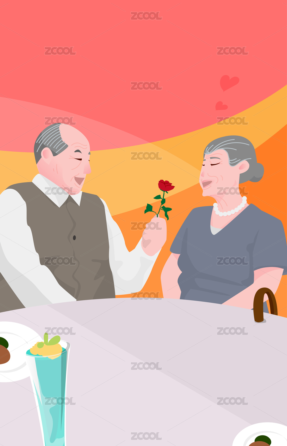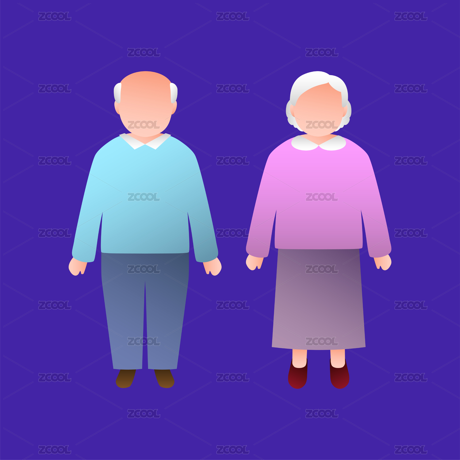 老人人物矢量插畫一對(duì)老夫婦老伯伯和老奶奶
