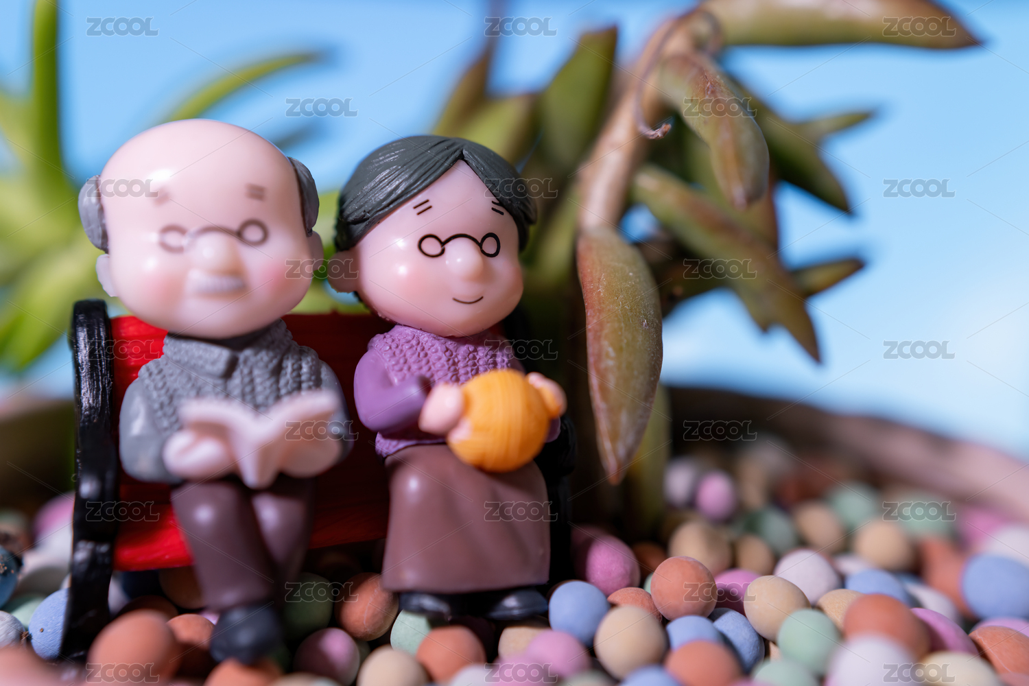 一對(duì)老夫婦在一起享受寧靜時(shí)刻的迷人雕像