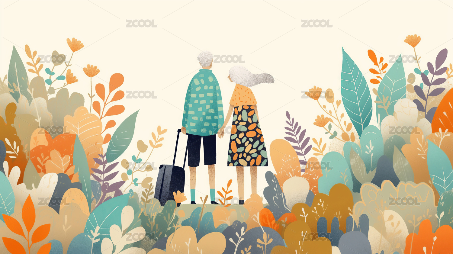 扁平風(fēng)一對(duì)老夫婦旅游背影