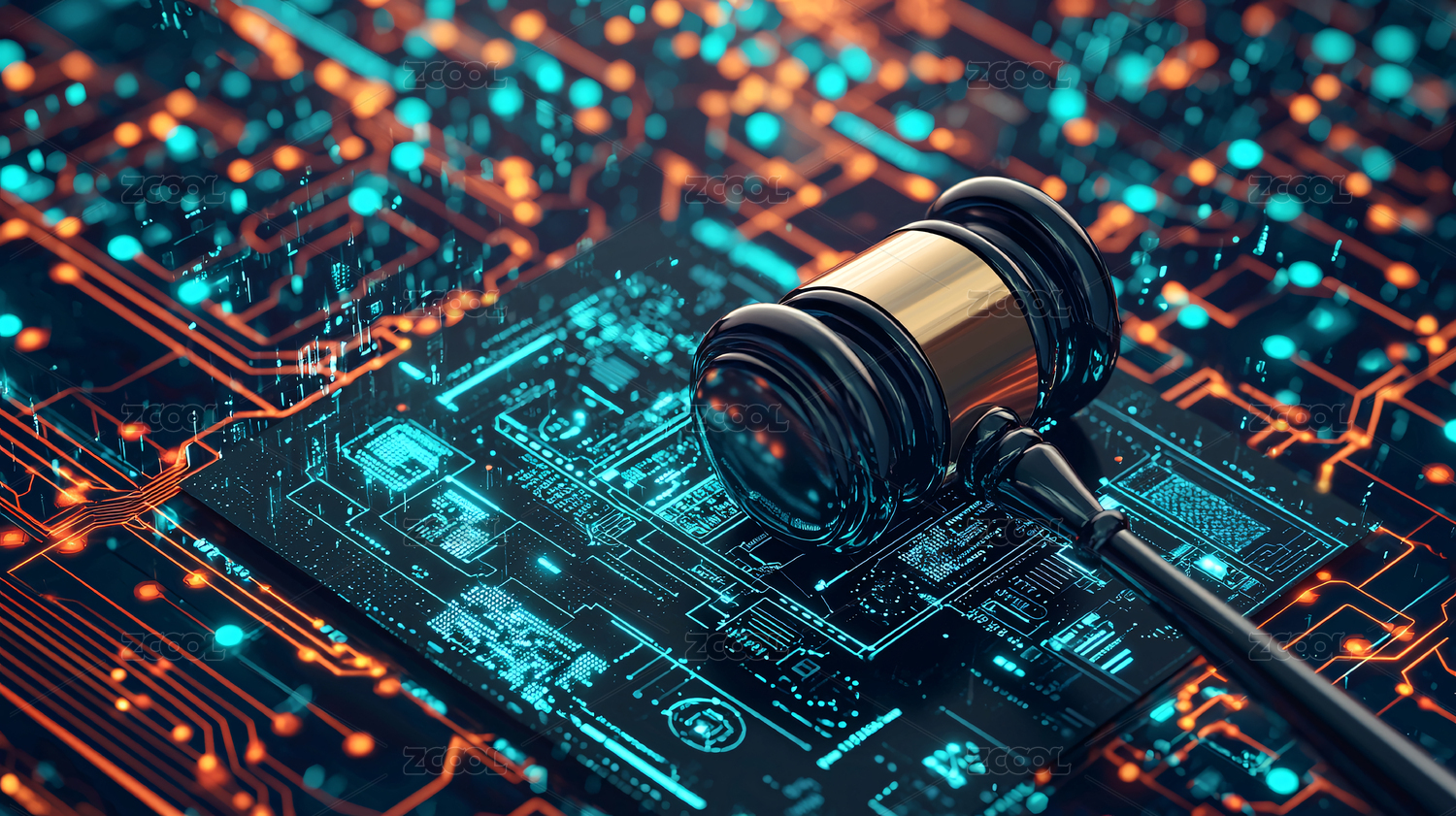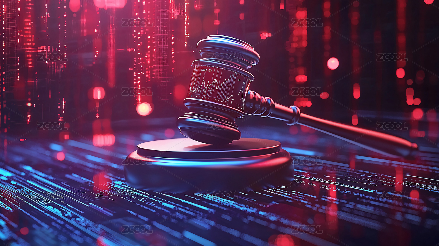 數(shù)字木槌象征著數(shù)據(jù)背景上的網(wǎng)絡(luò)法律