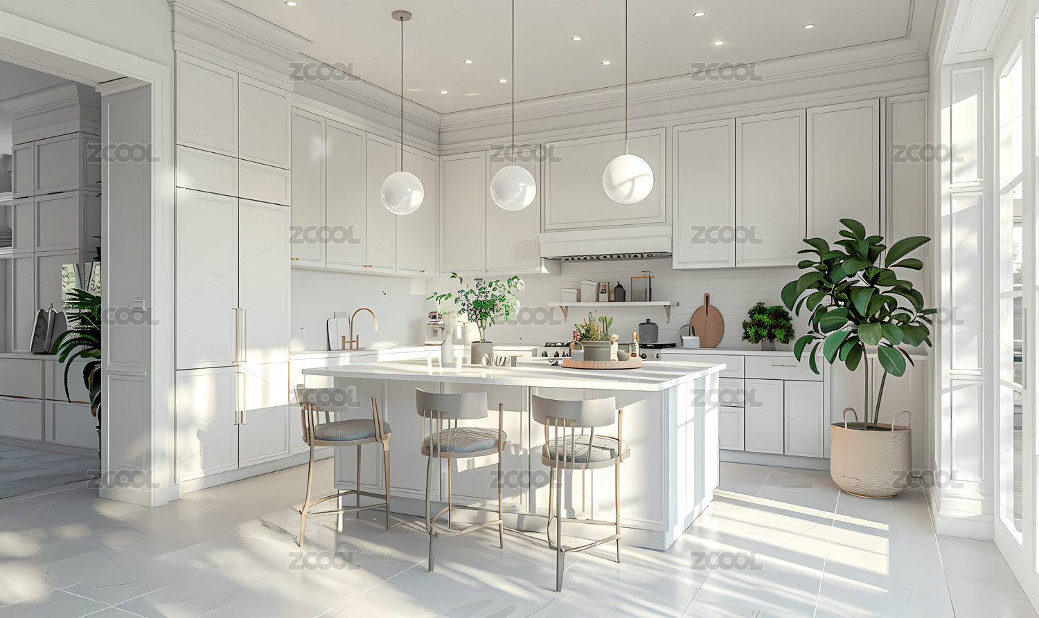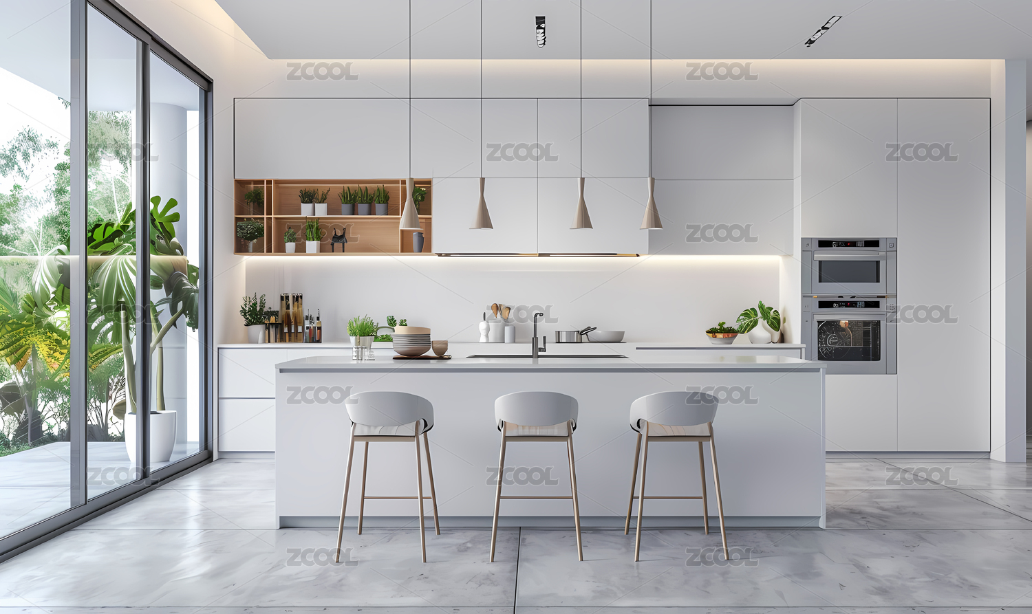 現(xiàn)代室內(nèi)的開放式廚房設(shè)計,簡約裝修設(shè)計圖
