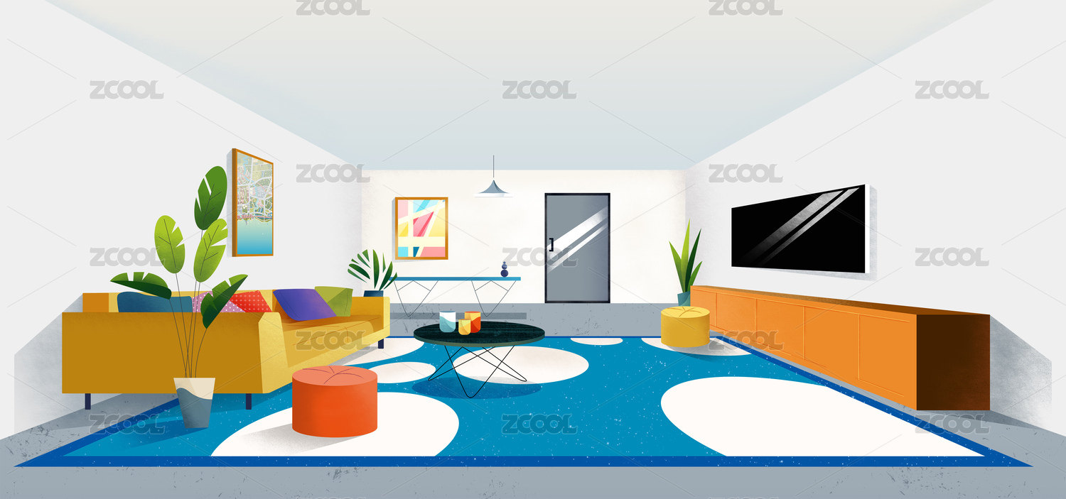 現(xiàn)代室內(nèi)裝修裝潢數(shù)字藝術(shù)插畫