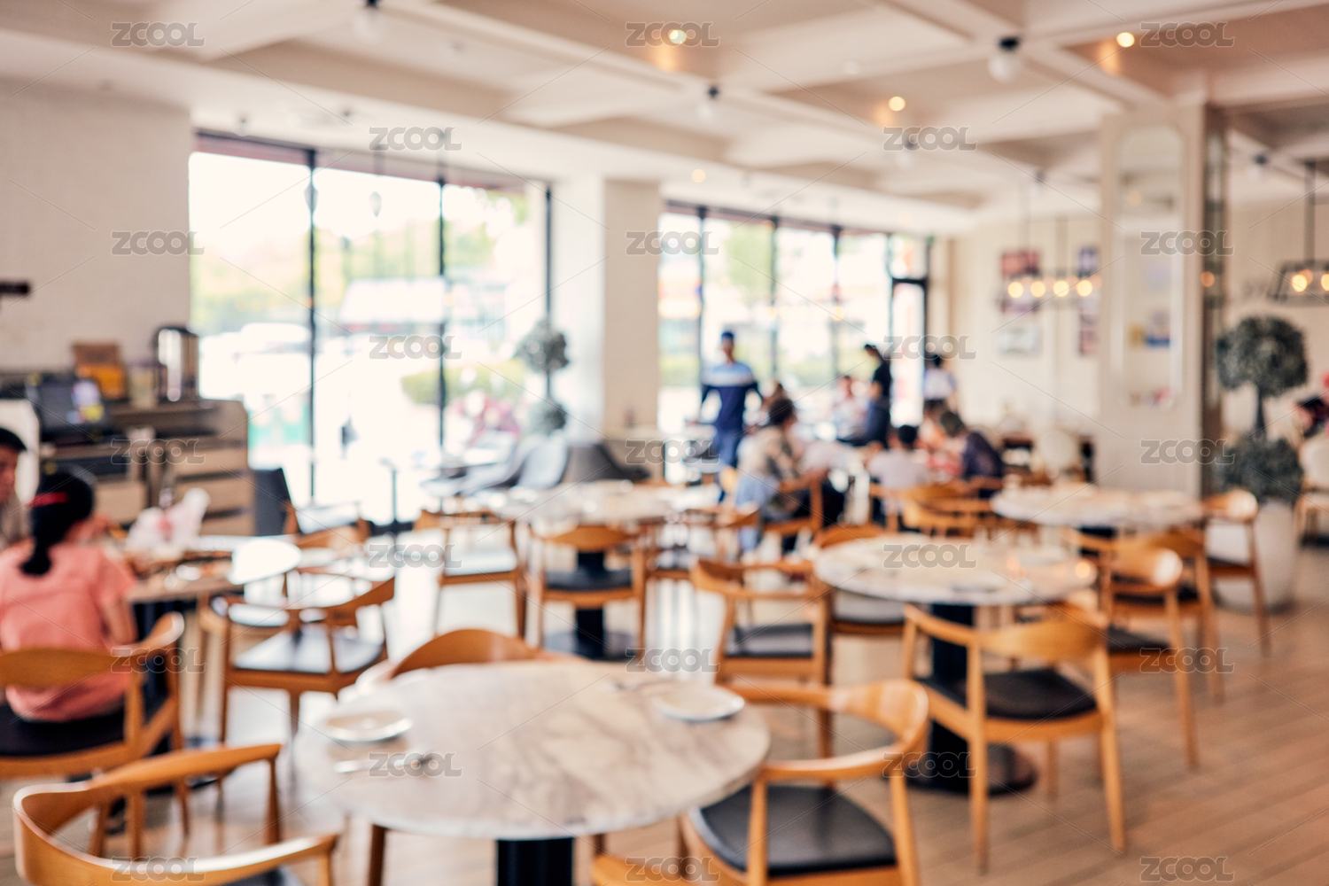 溫馨明亮簡約的現(xiàn)代室內(nèi)餐廳模糊背景