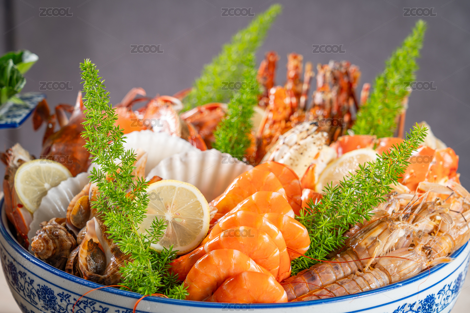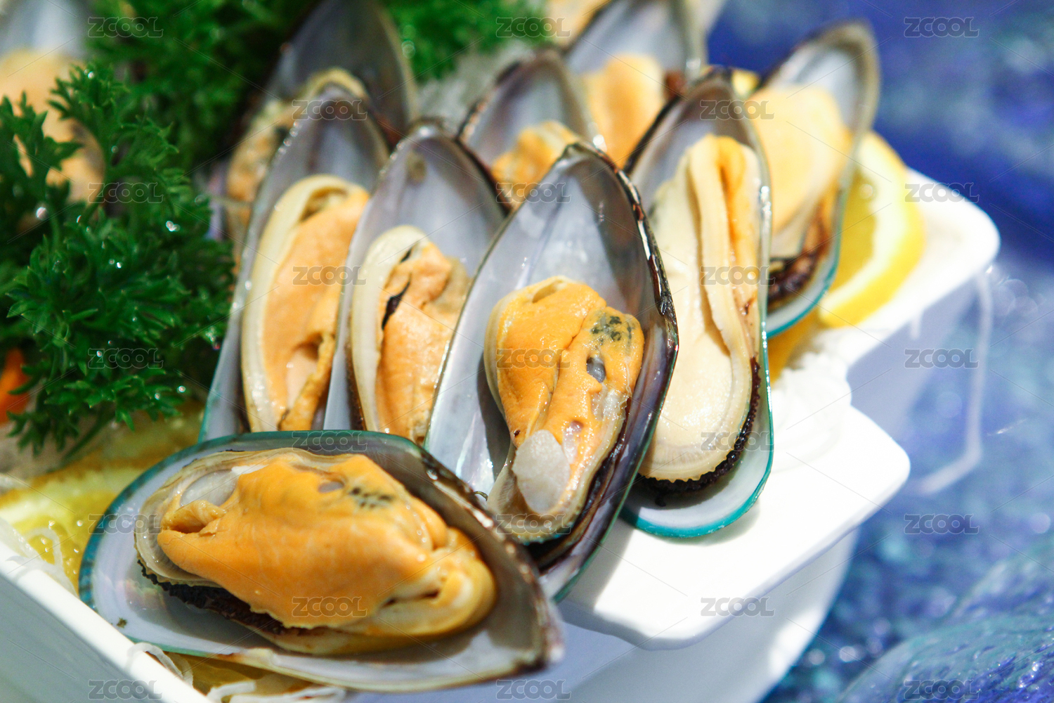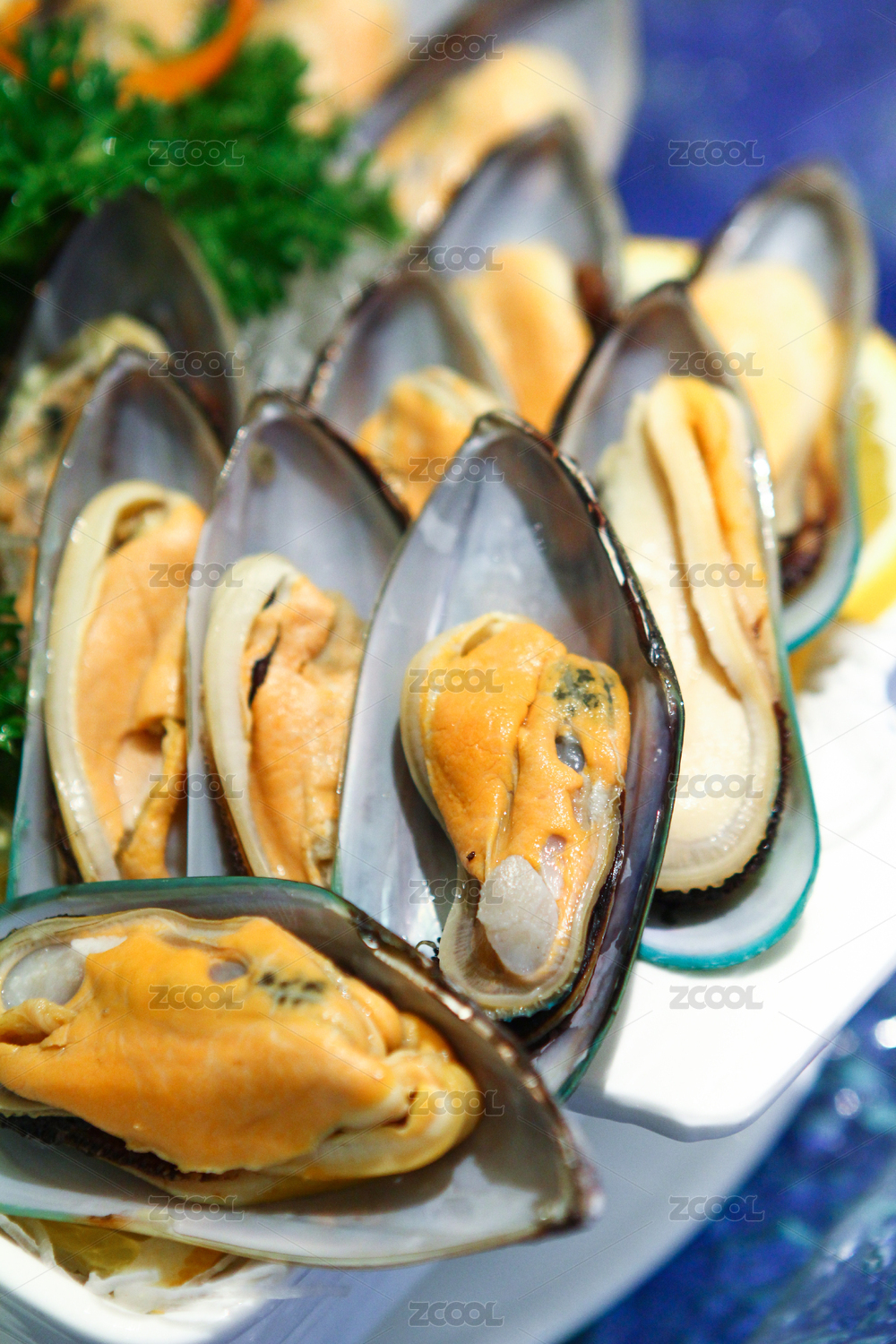 放在盤(pán)子里的海鮮花甲側(cè)拍