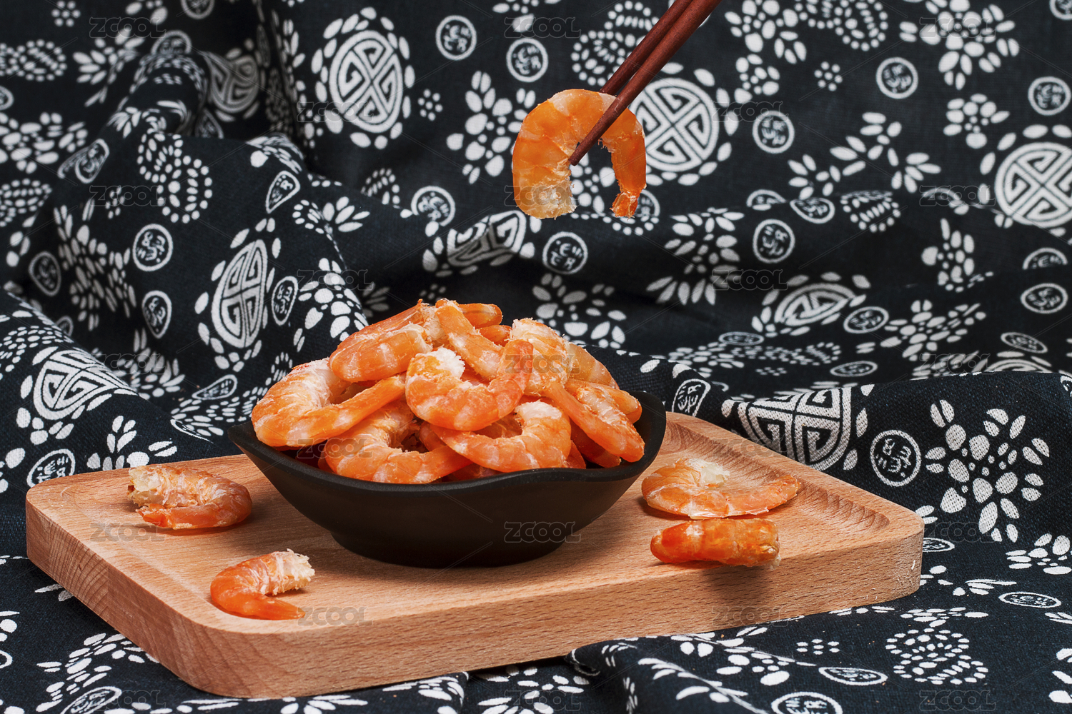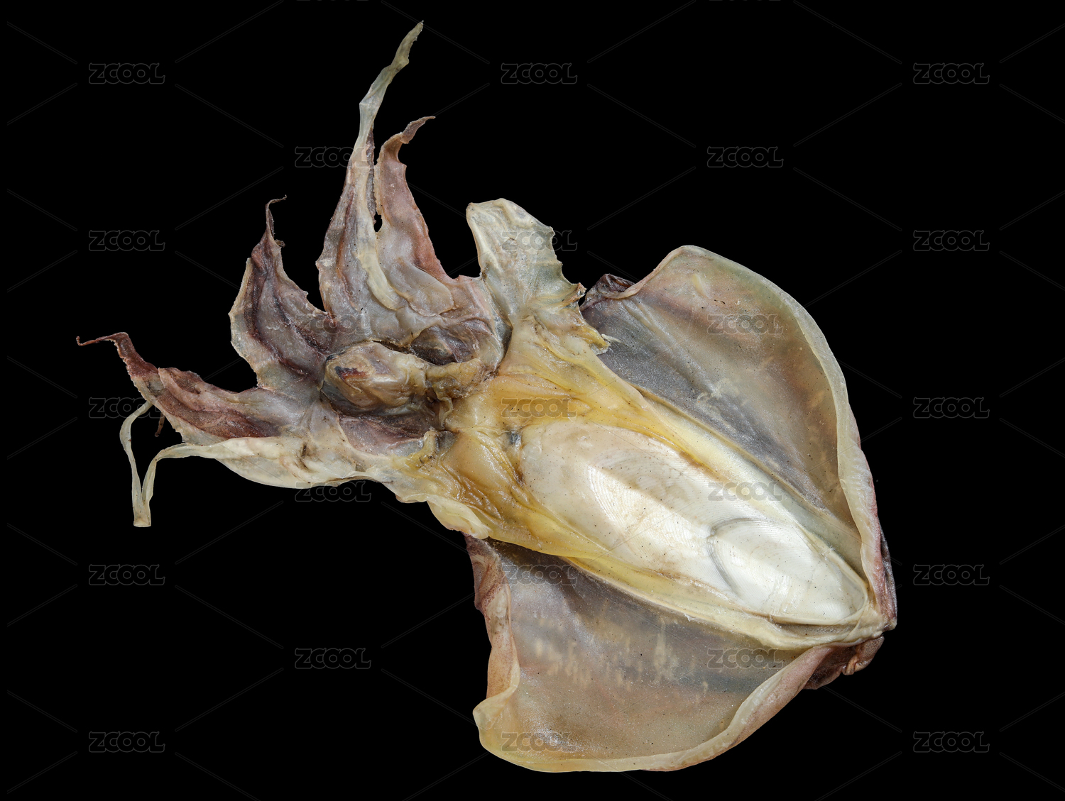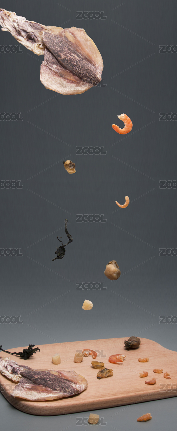 黑色背景上的海鮮海產(chǎn)干貨年貨美食墨魚(yú)干