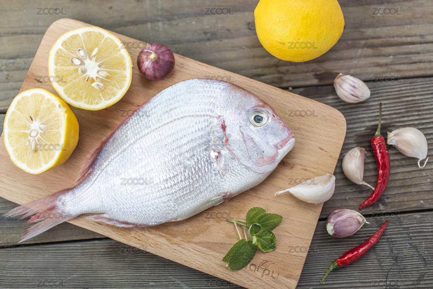 木砧板上的新鮮海鮮銀鱈魚(yú)