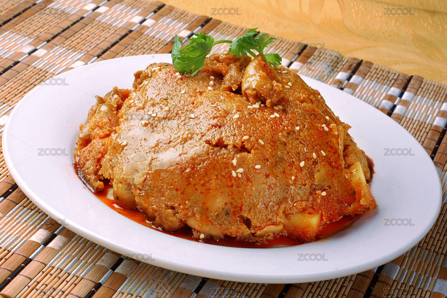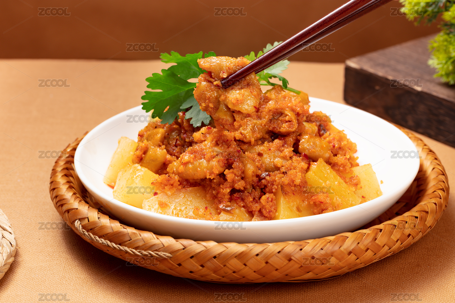 白盤里筷子夾著的粉蒸肥腸豬大腸