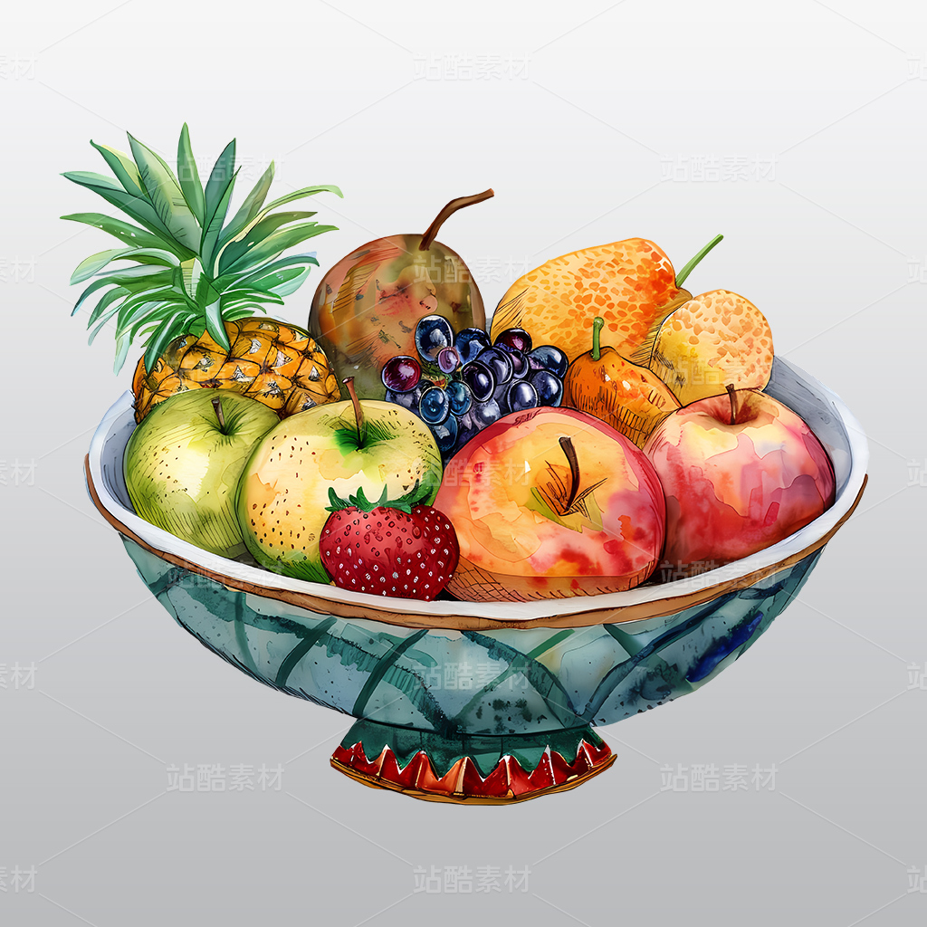 新鮮水果碗配多種水果高清透明免摳PNG圖片素材