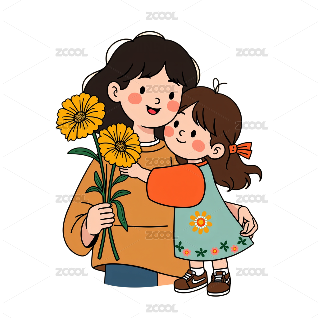 母親節(jié)慈愛的媽媽擁抱女兒Png免摳素材卡通扁平風(fēng)格