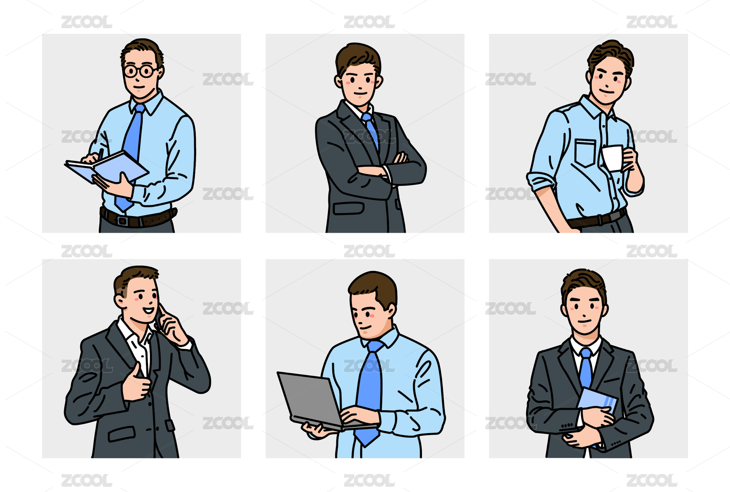 六宮格都市男性商務西裝襯衫男人卡通頭像