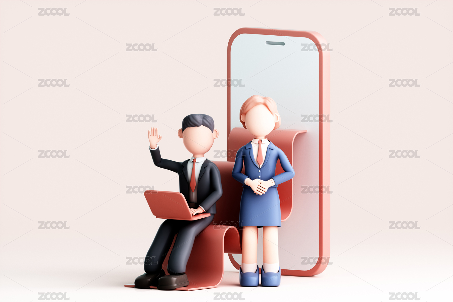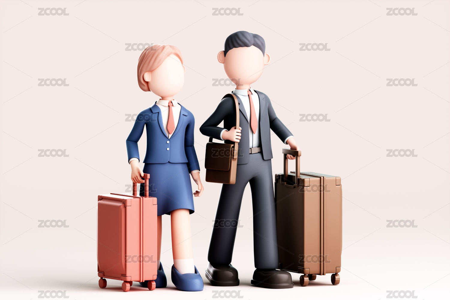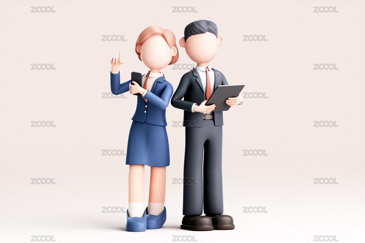 3D渲染的卡通男人和女人