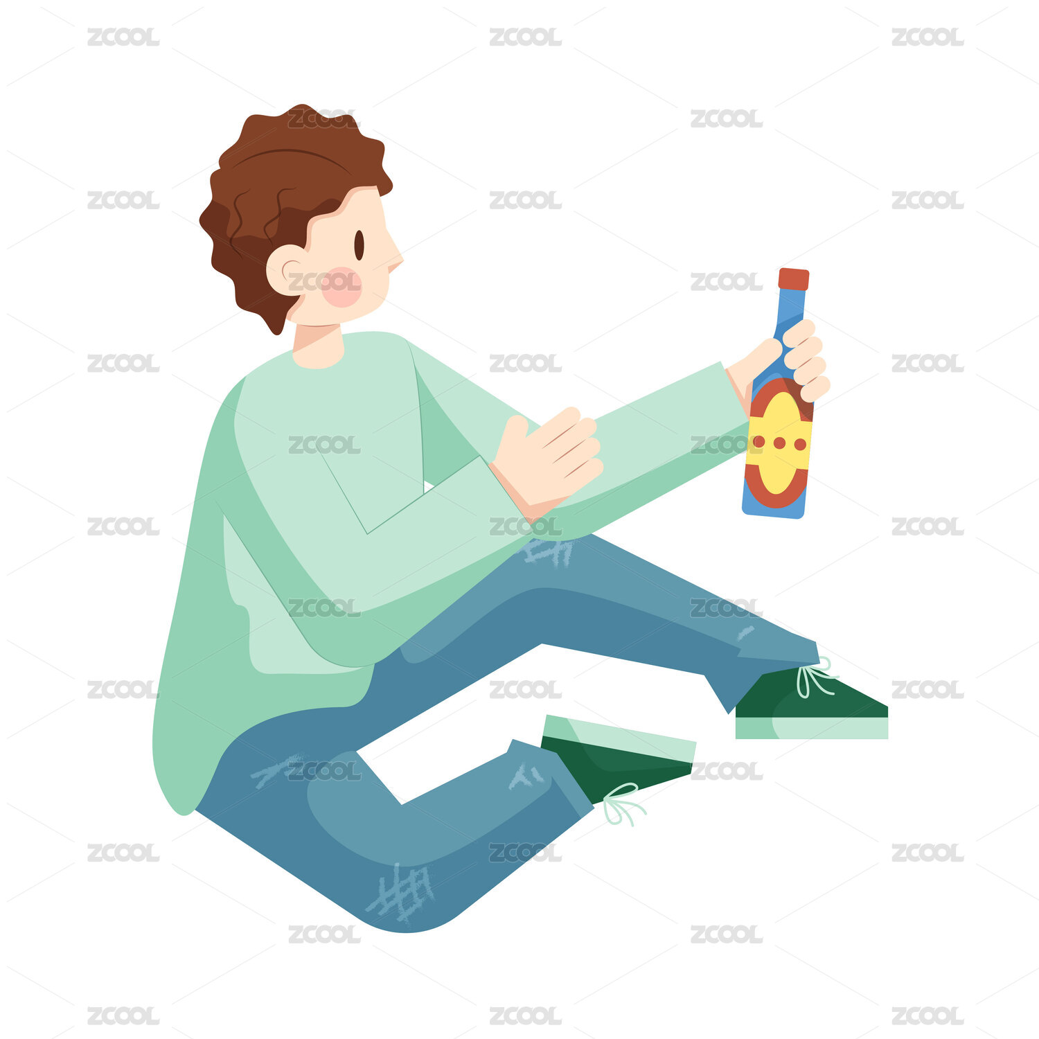 拿瓶子坐在地上的男人