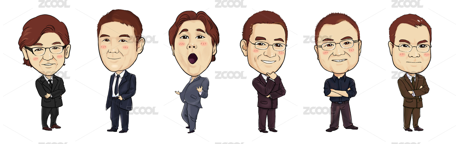 六個卡通人物西裝男人教育培訓商務