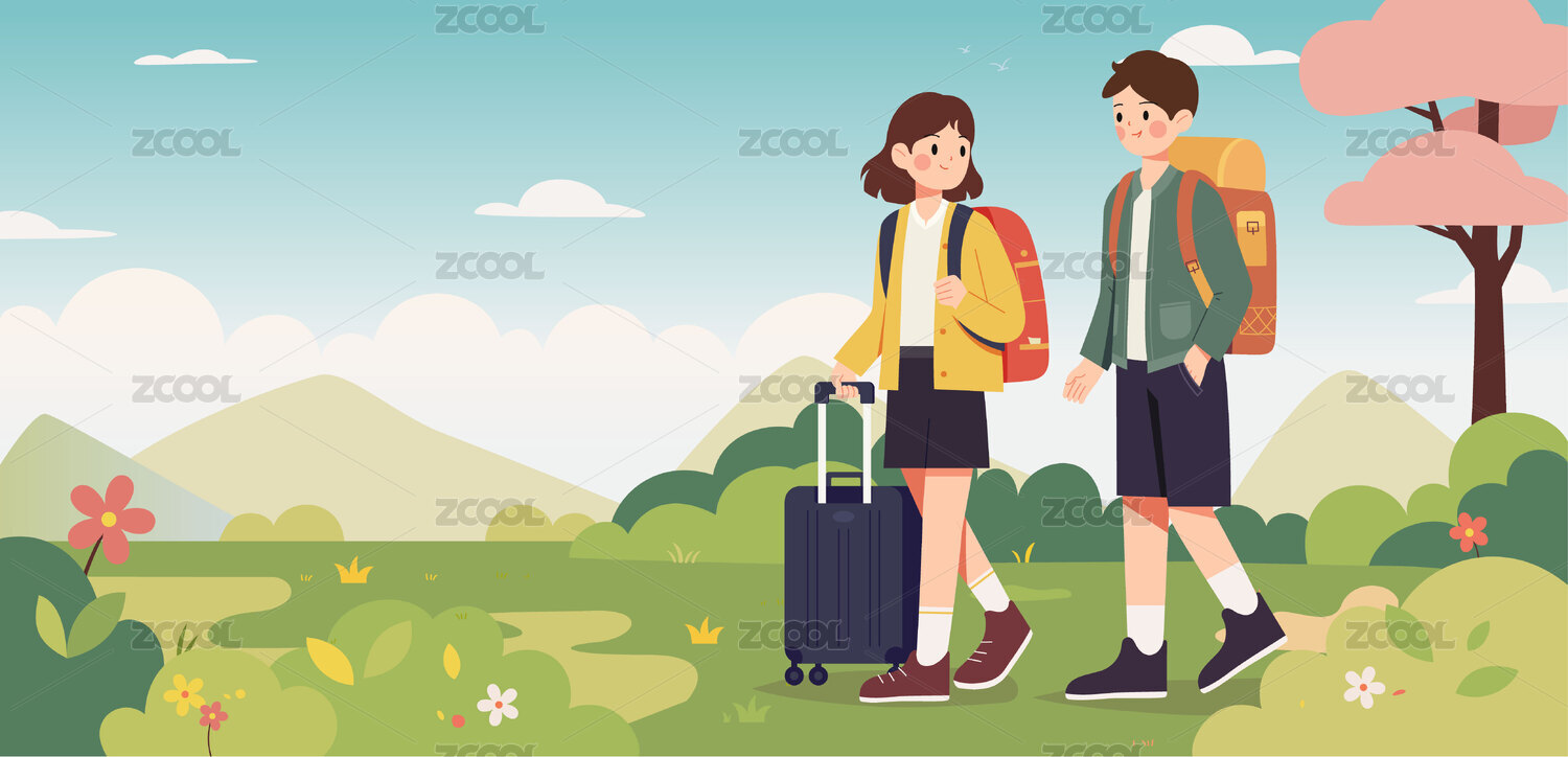 兩個人去旅行扁平風插畫
