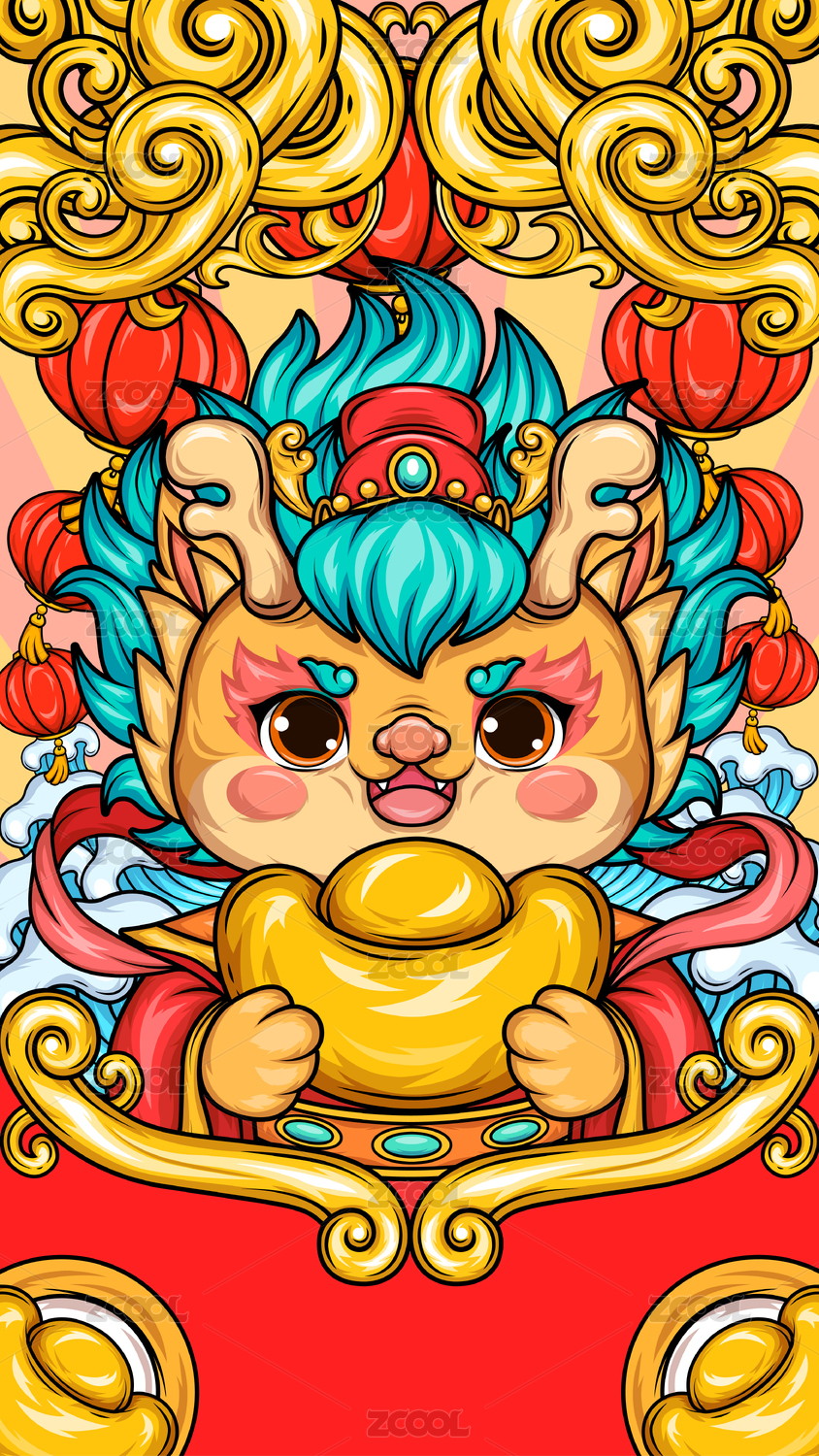 龍年國(guó)潮新春過(guò)年手機(jī)紅包封面壁紙屏保