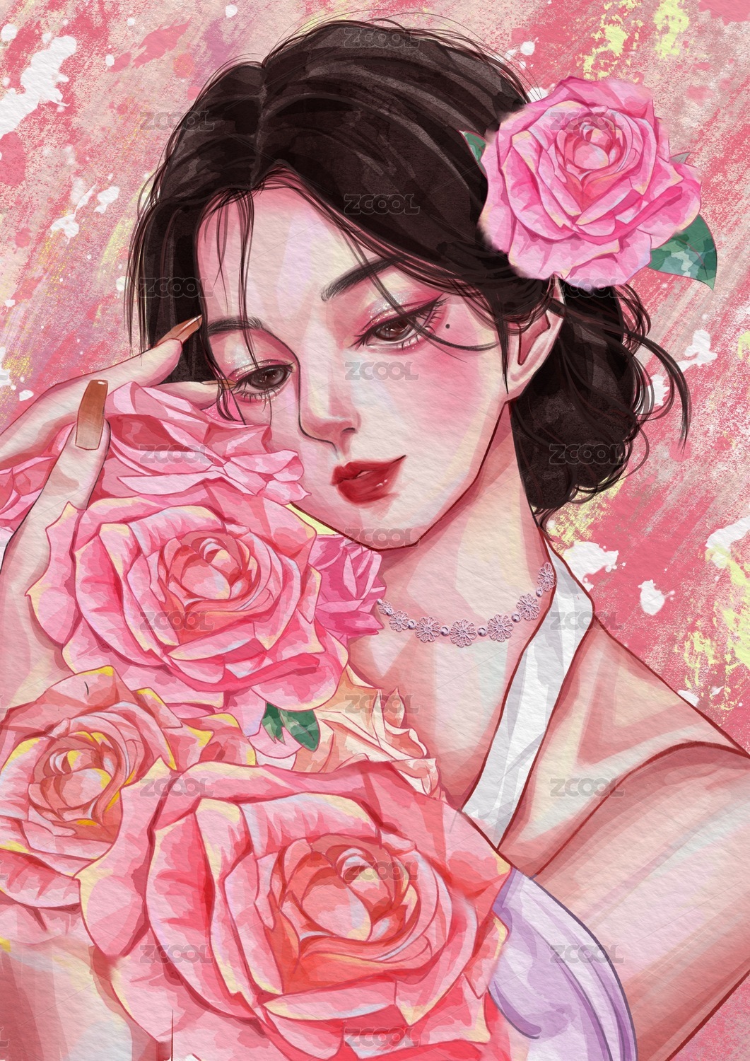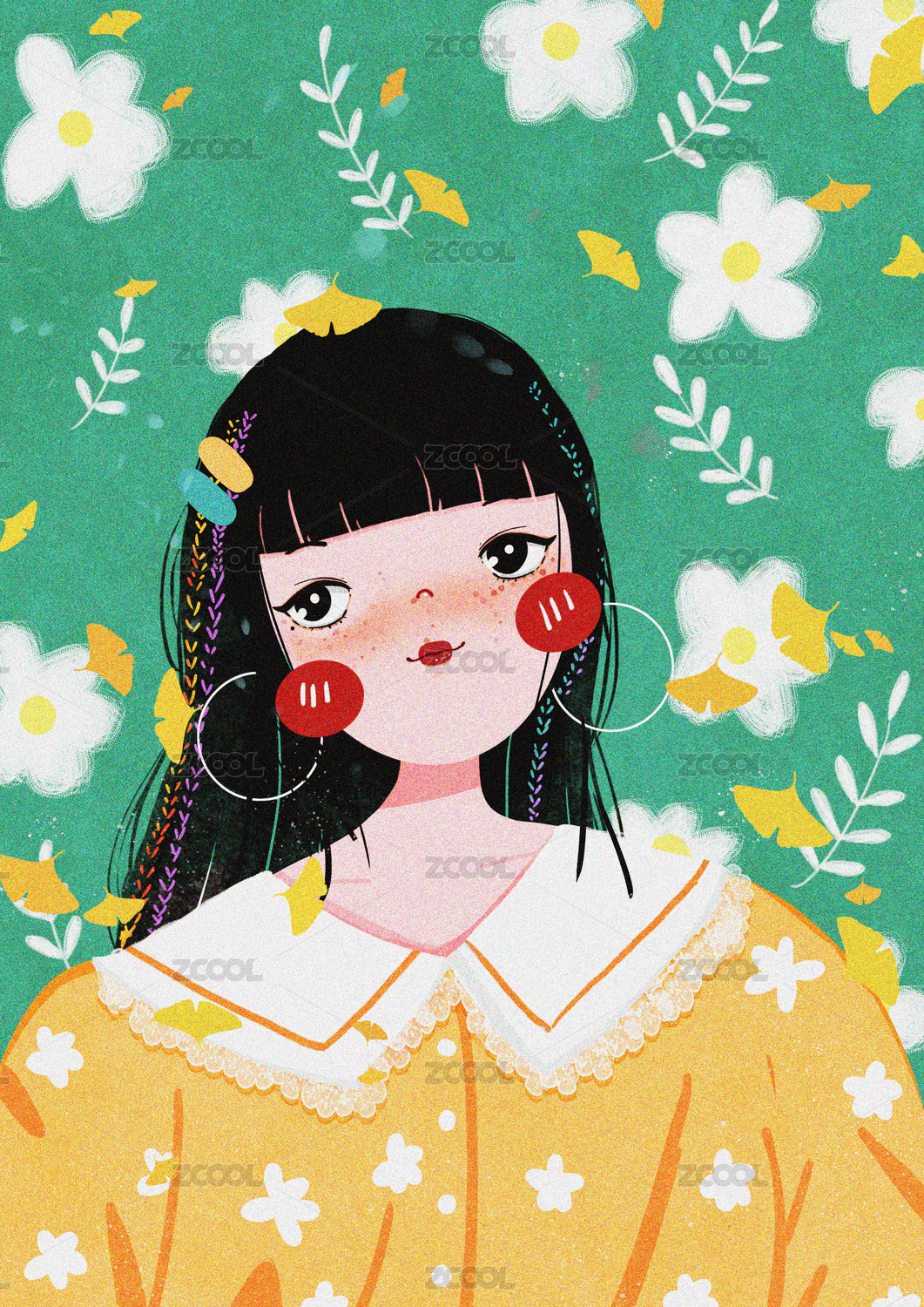 頭像壁紙手機(jī)殼封面女孩插畫海報(bào)