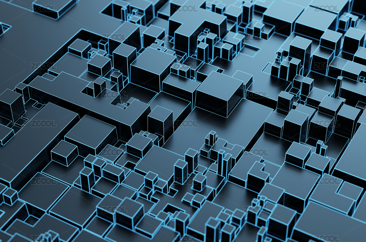 幾何抽象科技背景,隨機(jī)起伏的方塊組合的類似芯片電路的背景。