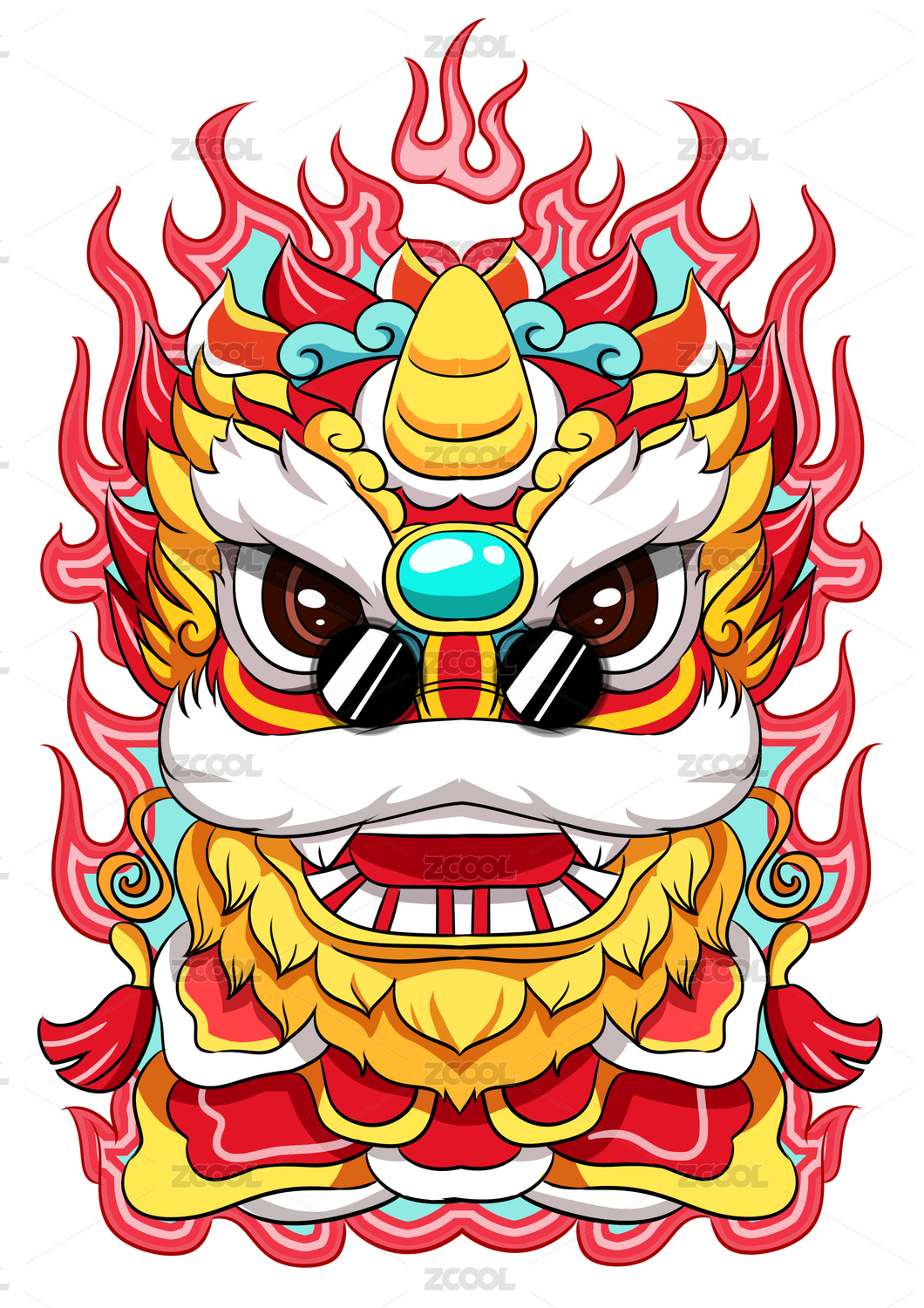 國潮獅子頭插畫元素設(shè)計