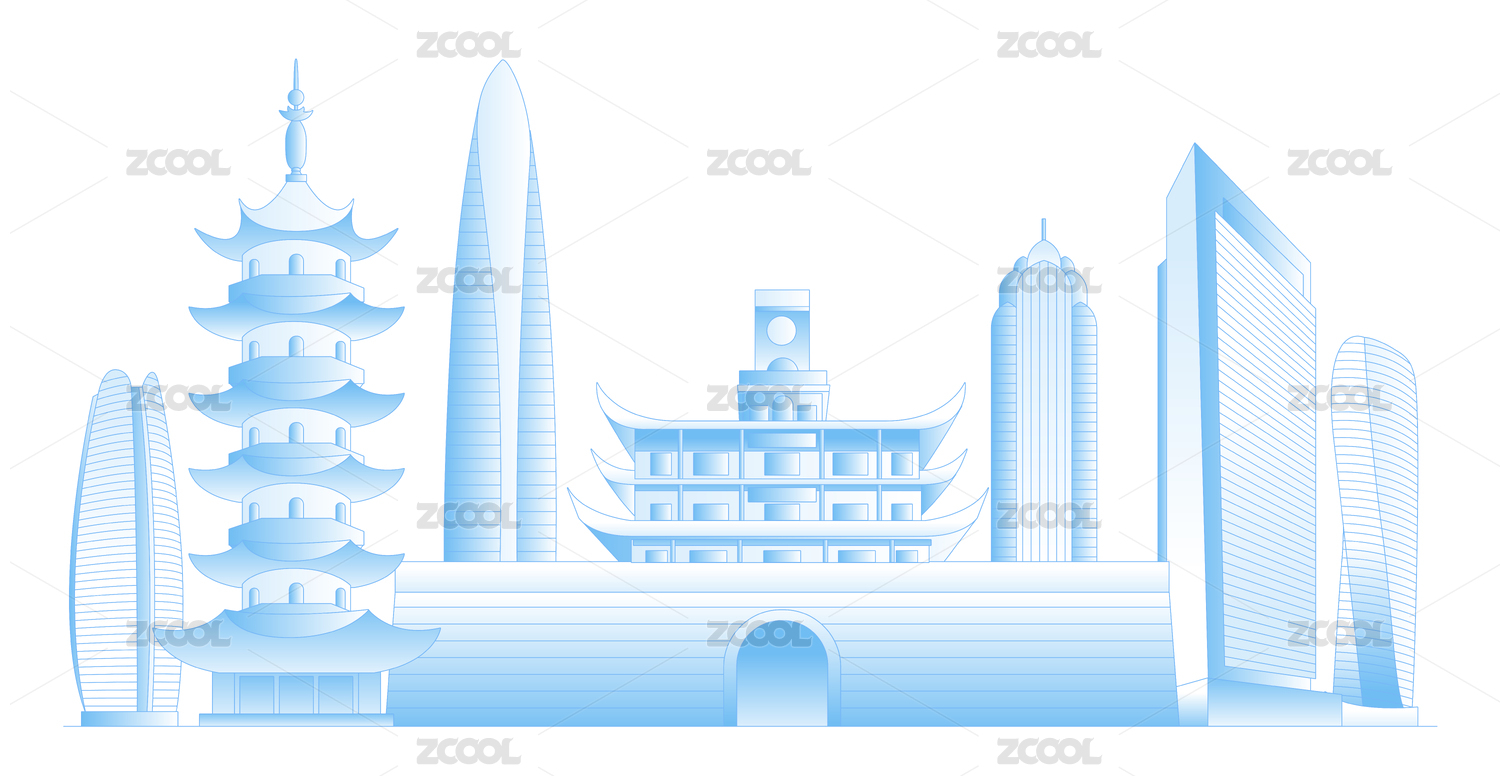 溫州城市地標(biāo)建筑群矢量插畫(huà)