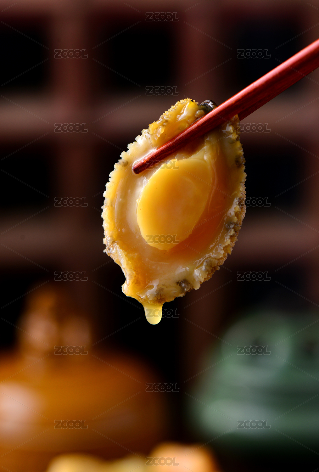 深色調(diào)背景下筷子夾的海鮮鮑魚