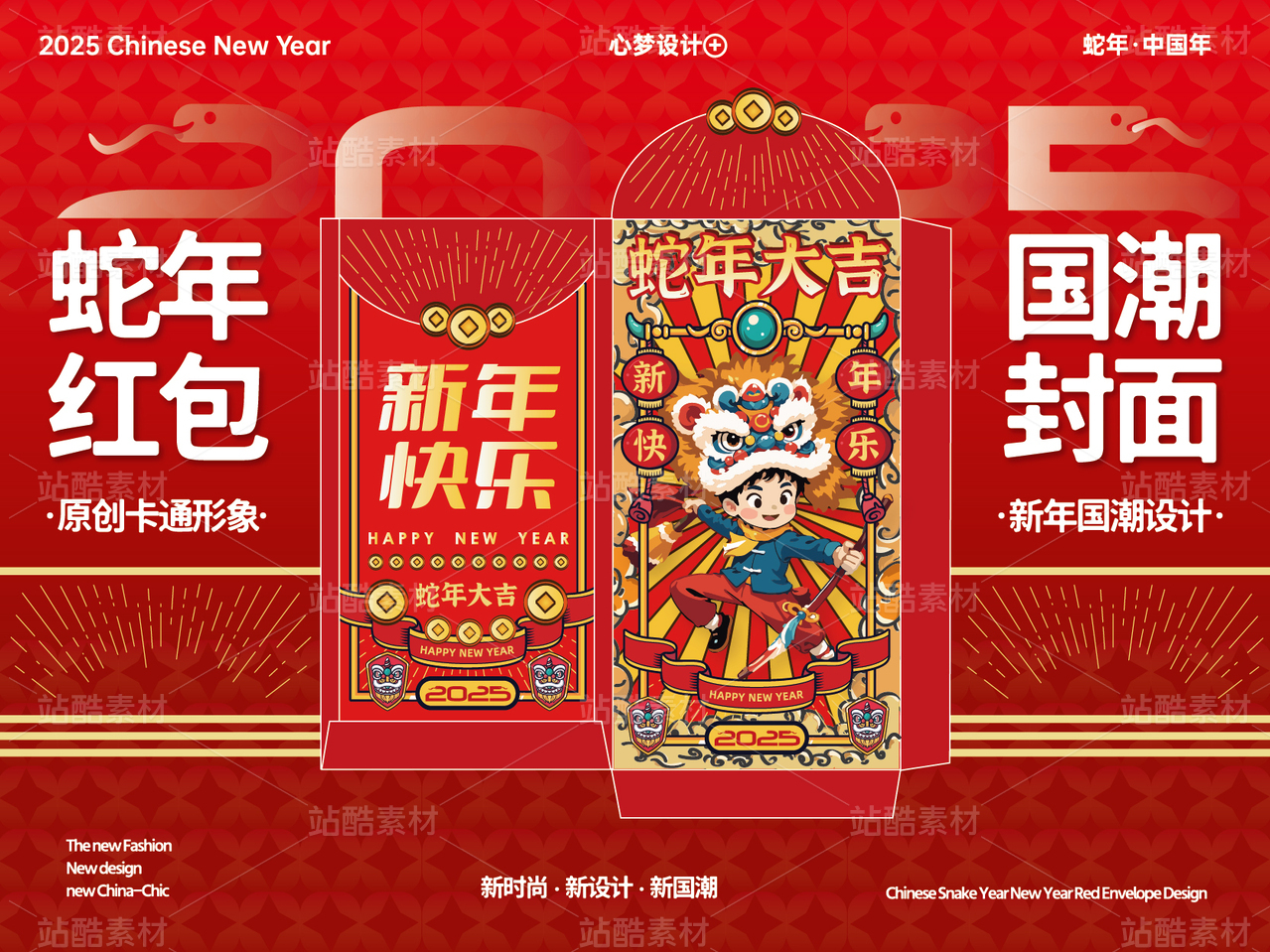 春節(jié)國(guó)潮紅包封面 | 蛇年卡通形象設(shè)計(jì)