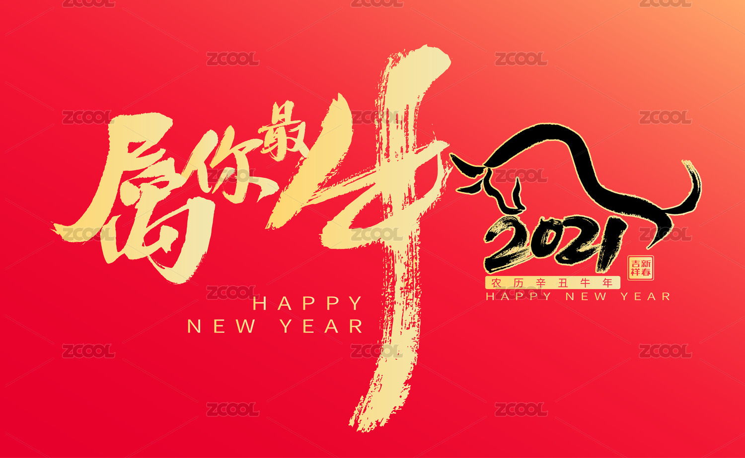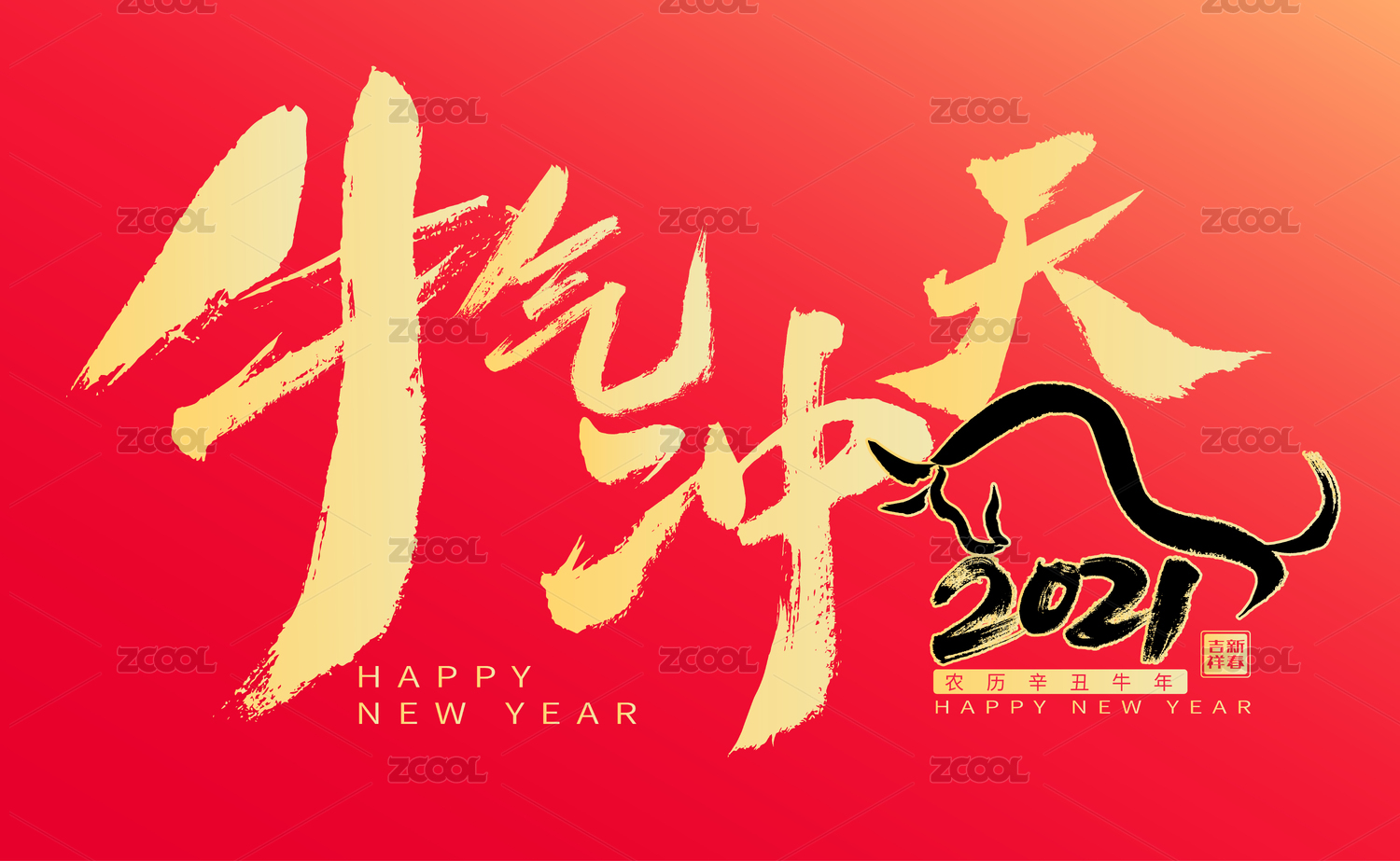 牛氣沖天,漢字手寫(xiě)書(shū)法字體