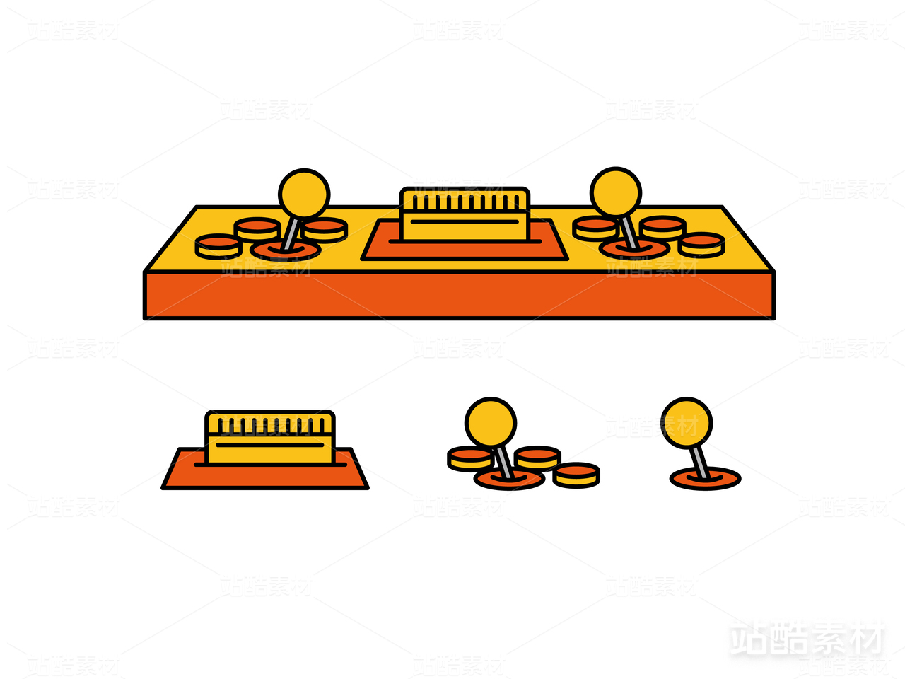 矢量復(fù)古電子游戲機搖桿描邊插畫