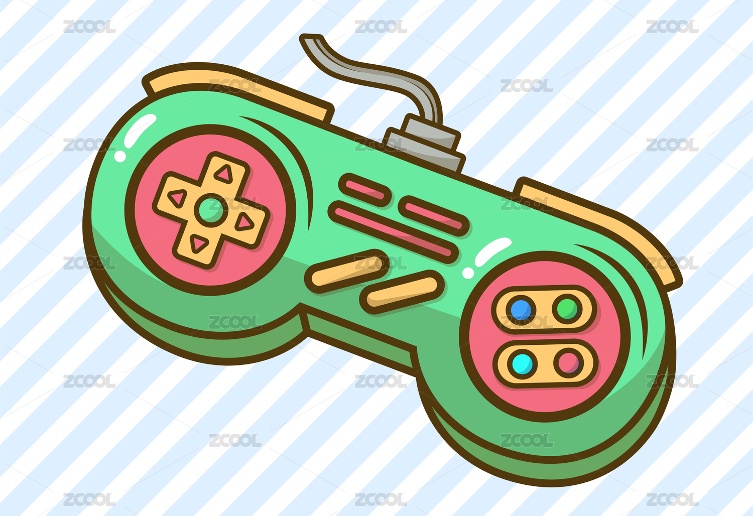 卡通風(fēng)格彩色游戲按鍵遙控手柄插畫