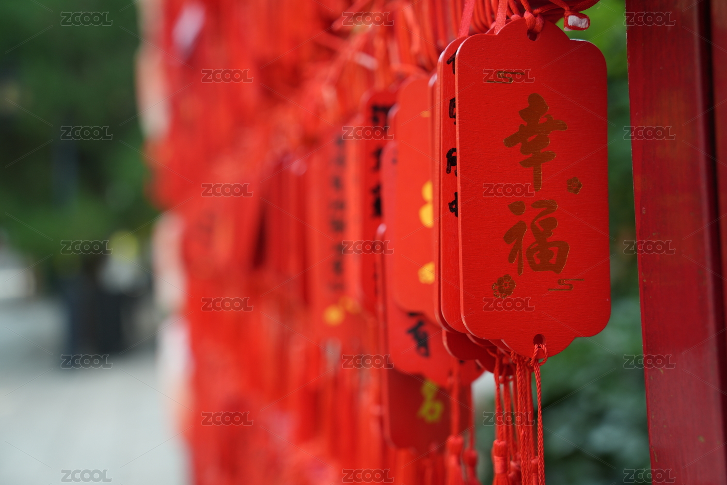 紅色祈福牌特寫(xiě)