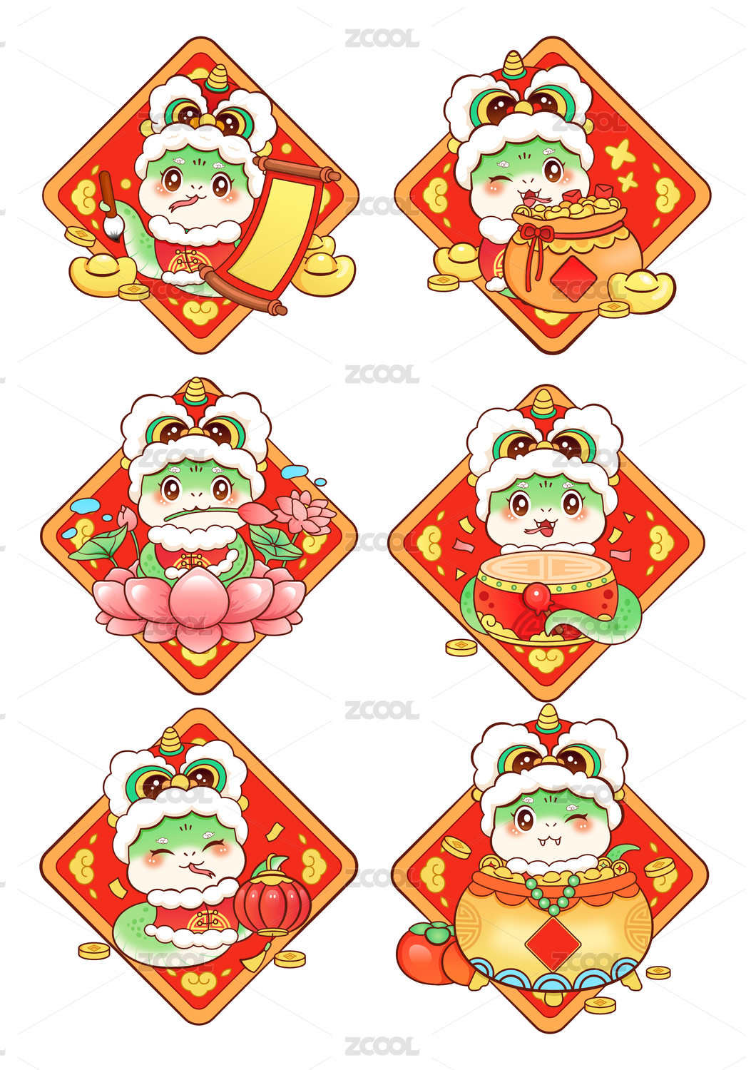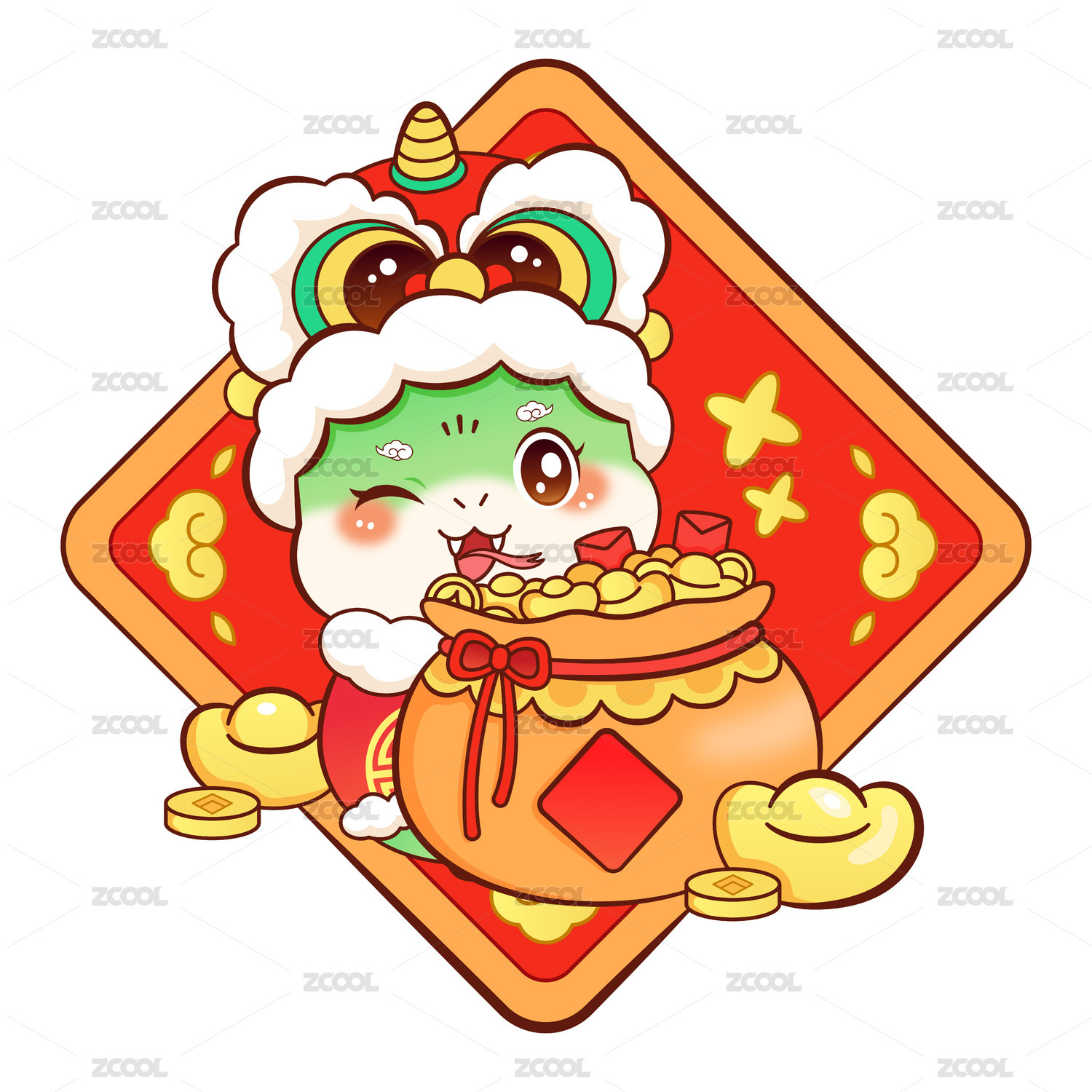 蛇年IP卡通貼紙紅包插畫 金蛇獻瑞
