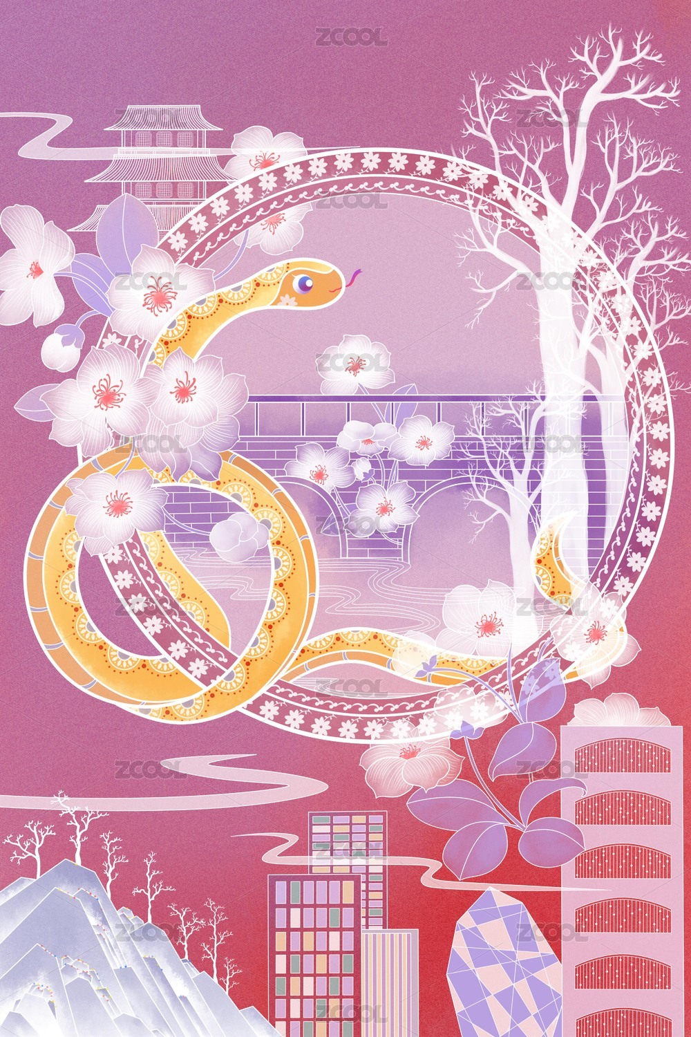 唯美國風(fēng)插畫蛇年創(chuàng)意插畫
