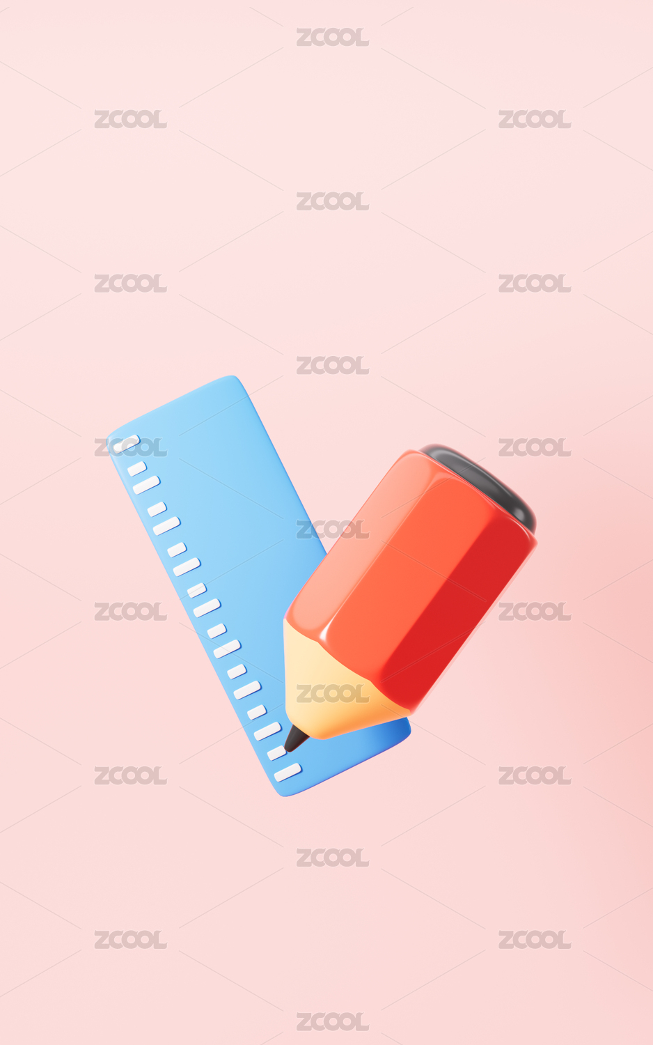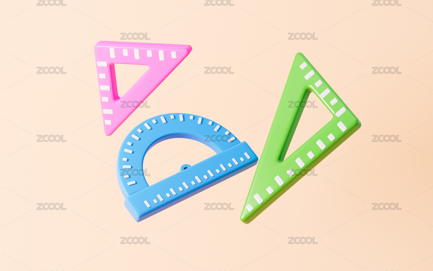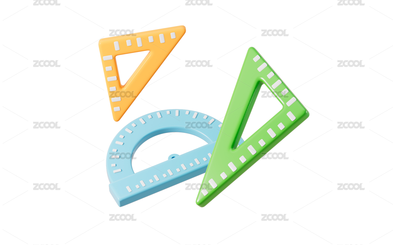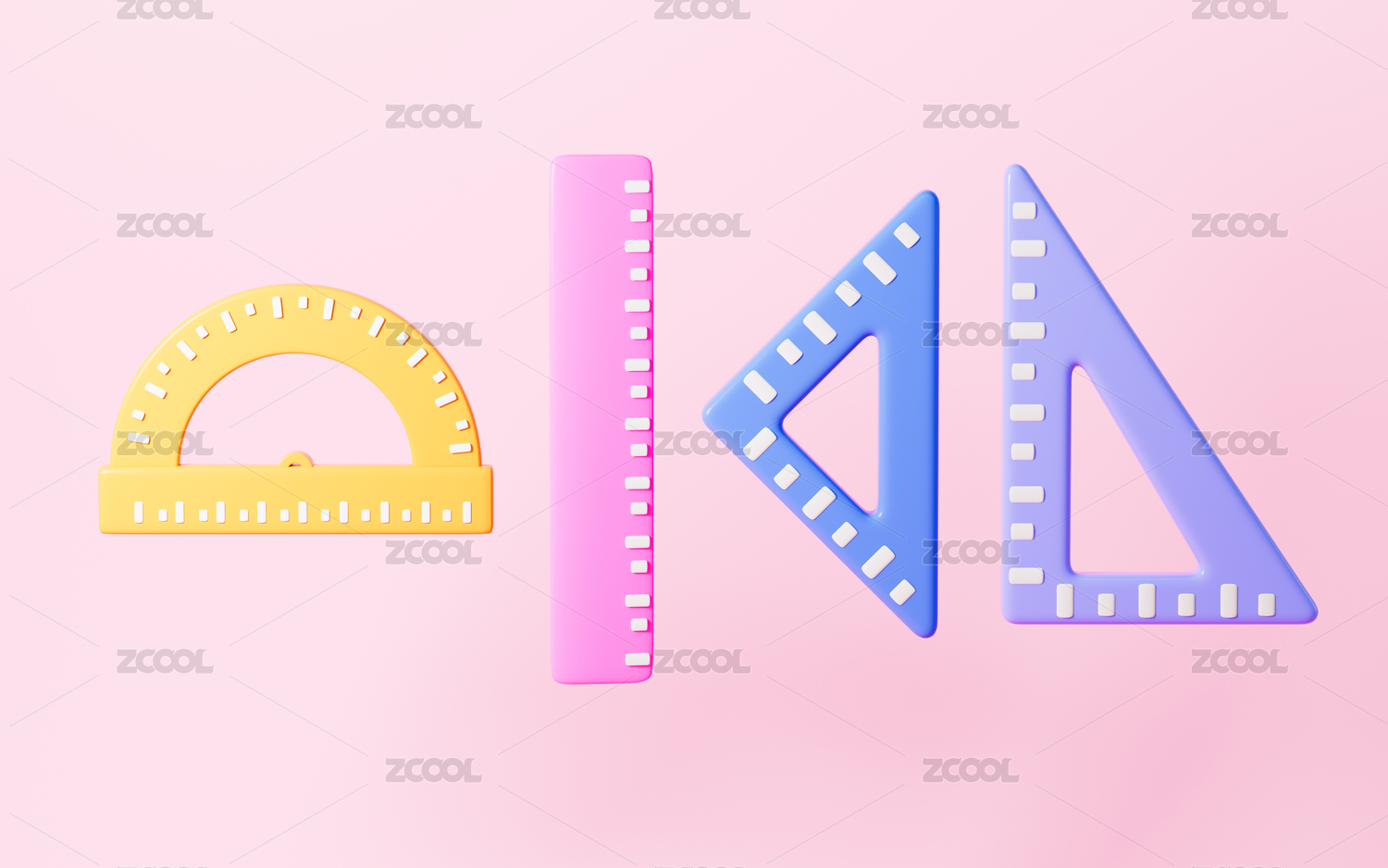 卡通三角尺量角器直尺等學(xué)習(xí)用品3D渲染