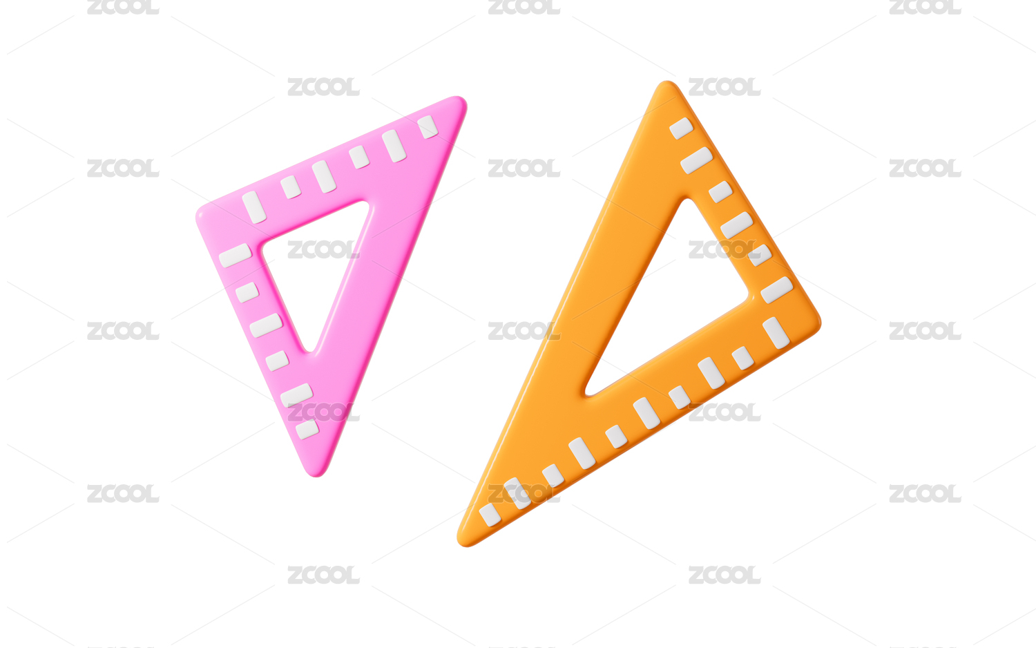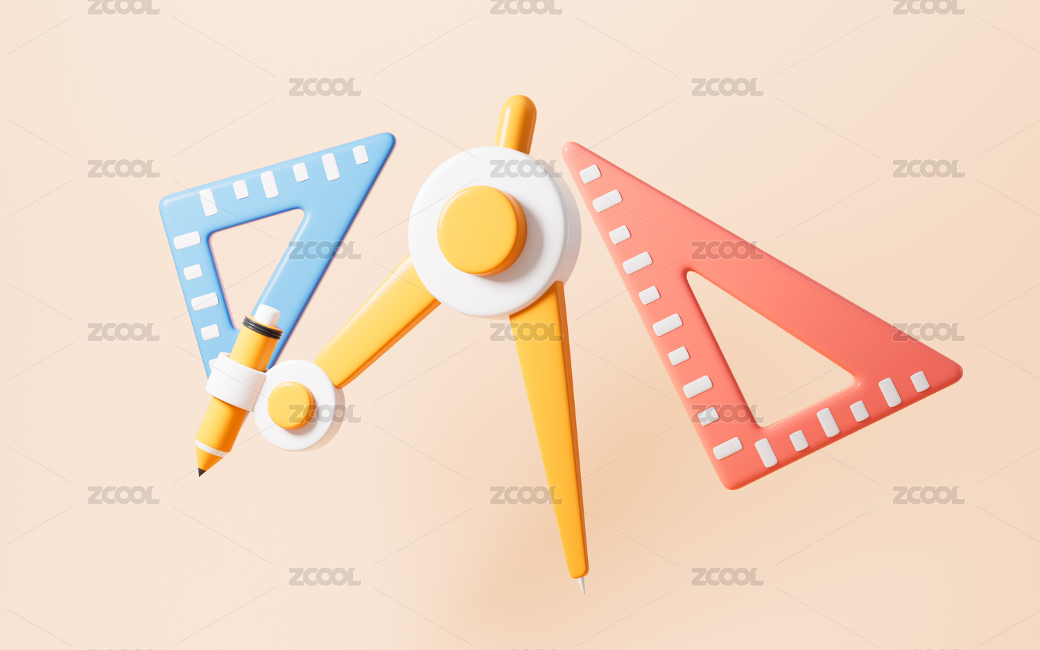 卡通圓規(guī)和三角尺模型3D渲染