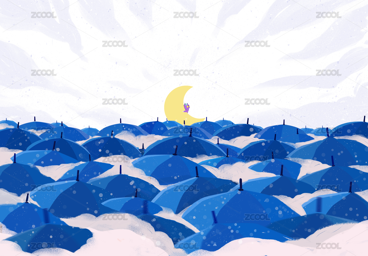 藍(lán)色雨傘里的月亮和貓大尺寸