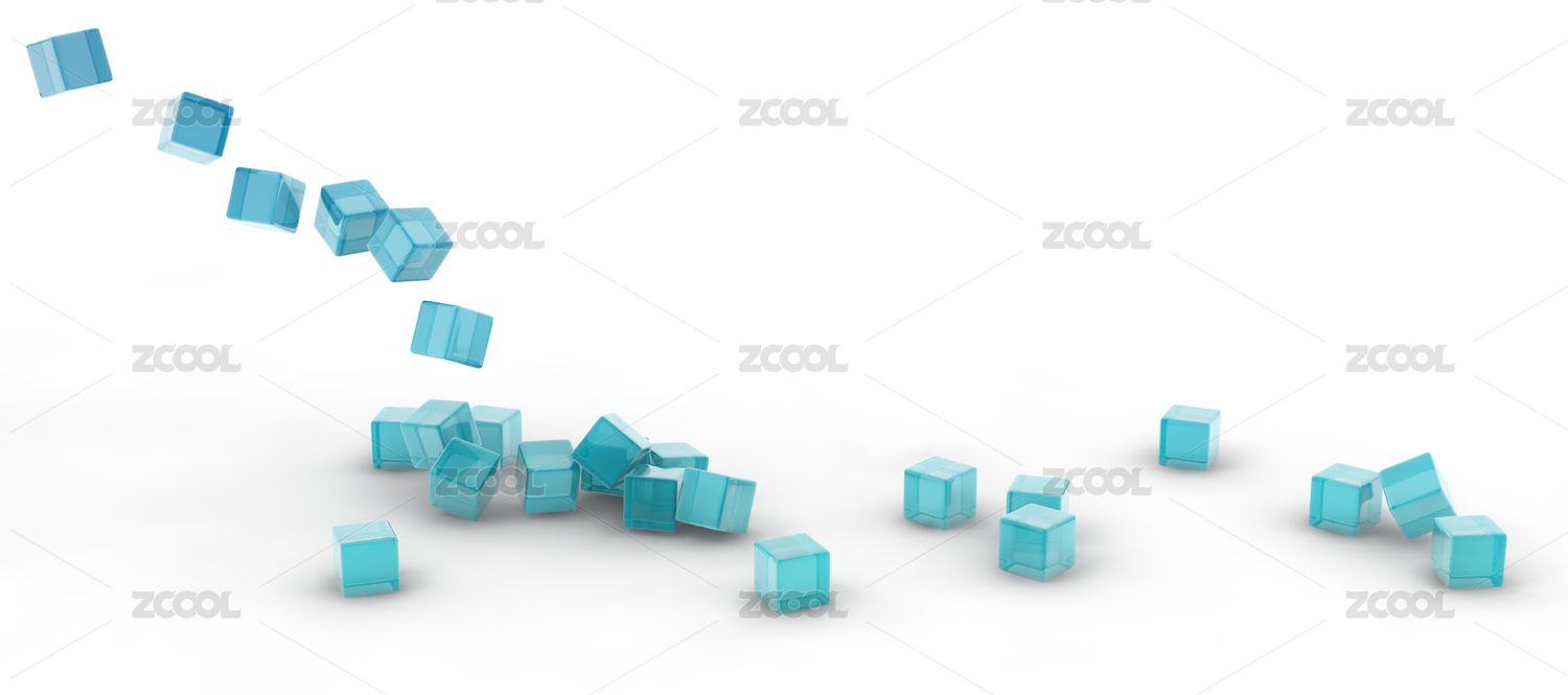 晶瑩剔透的水滴與將要融化的冰塊灑落在天藍色的背景上