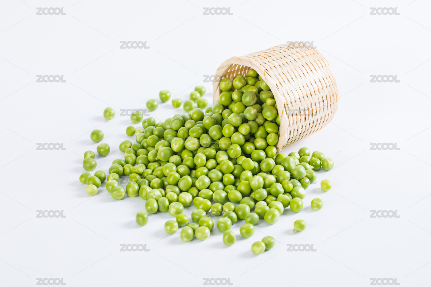 從竹筐里的灑落出來的新鮮嫩豌豆子