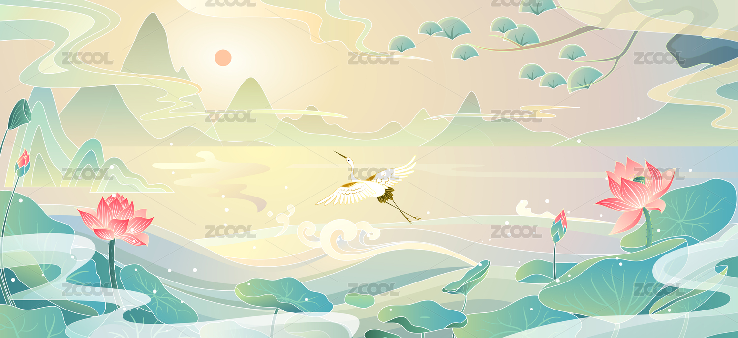 國潮風(fēng)杭州西湖美麗的風(fēng)景矢量插畫
