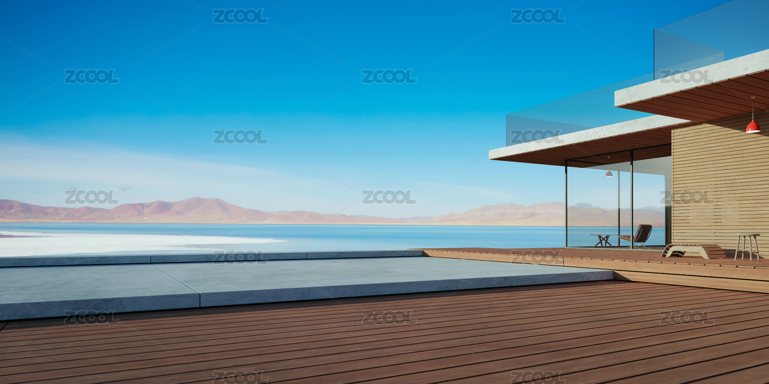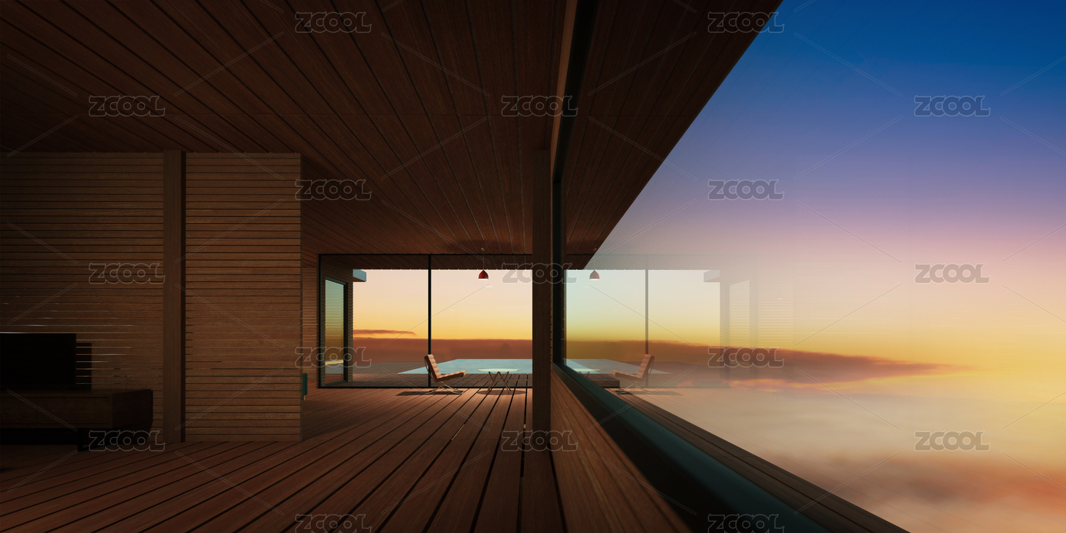 度假木房子室內(nèi)與美麗的風(fēng)景圖