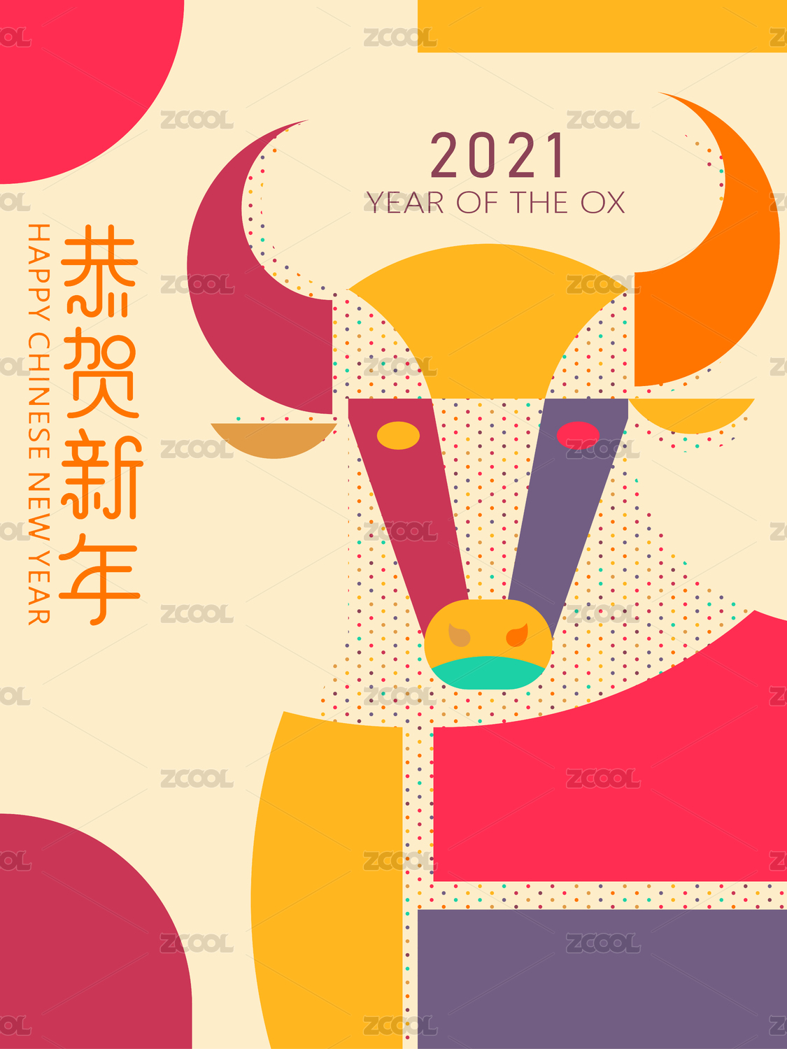 2021年牛年,牛剪影設(shè)計和中國元素設(shè)計