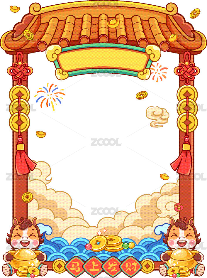中國傳統(tǒng)宮殿建筑局部,金碧輝煌用金色邊框