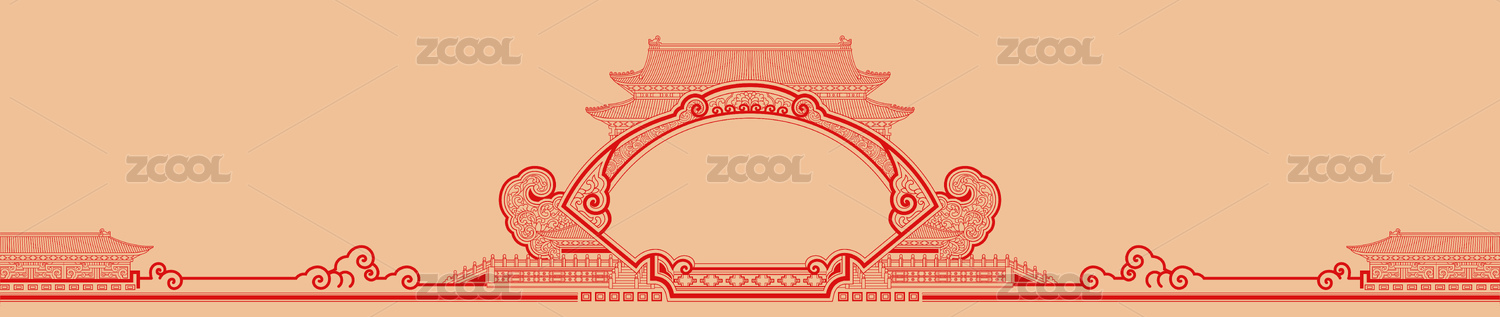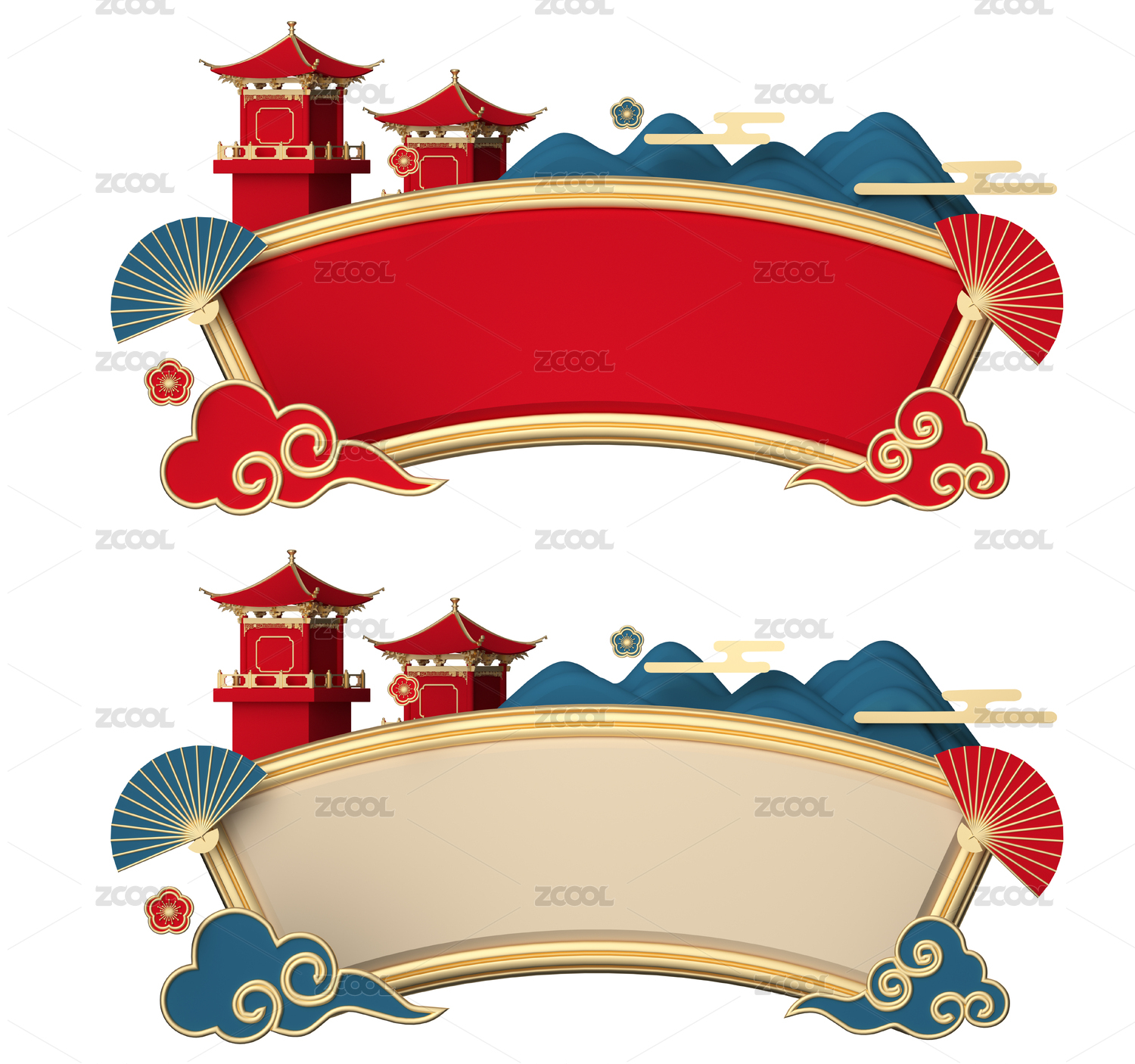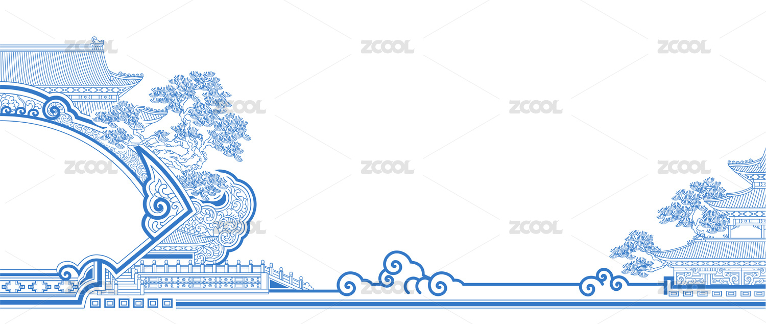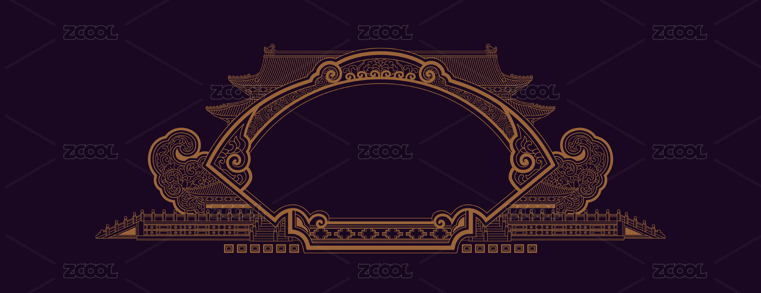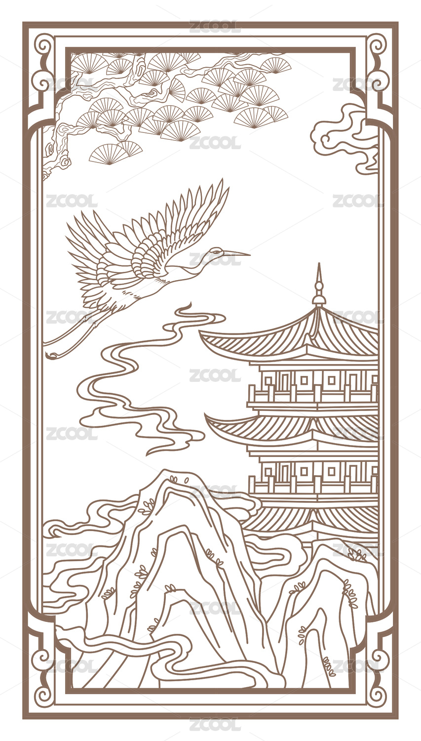 傳統(tǒng)邊框內(nèi)的古建筑山水圖案