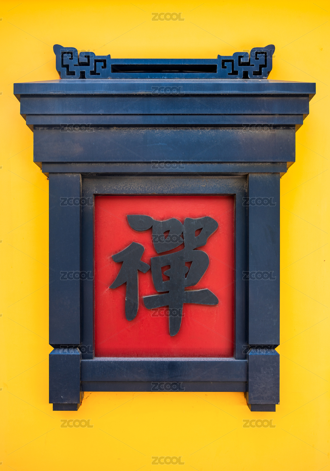 中國佛教寺廟黃色墻面的忍字標(biāo)語