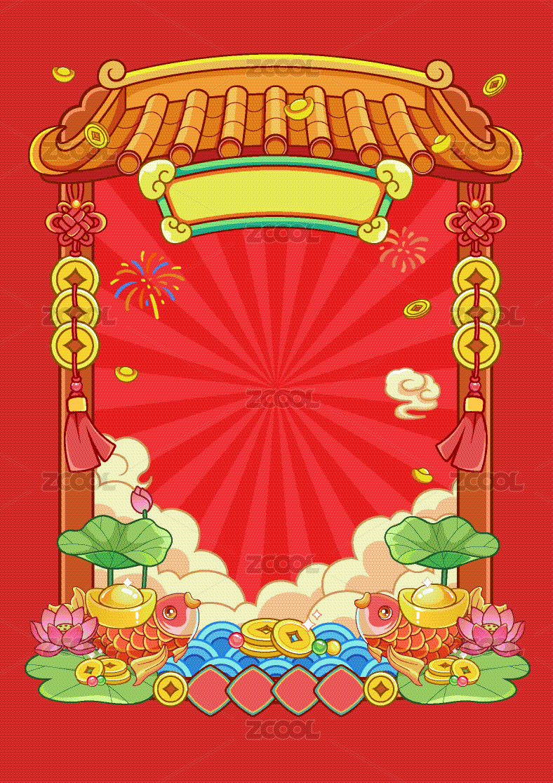 卡通描邊新年紅色喜慶建筑邊框背景插畫