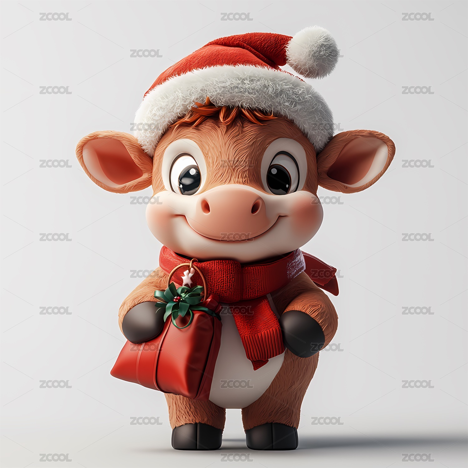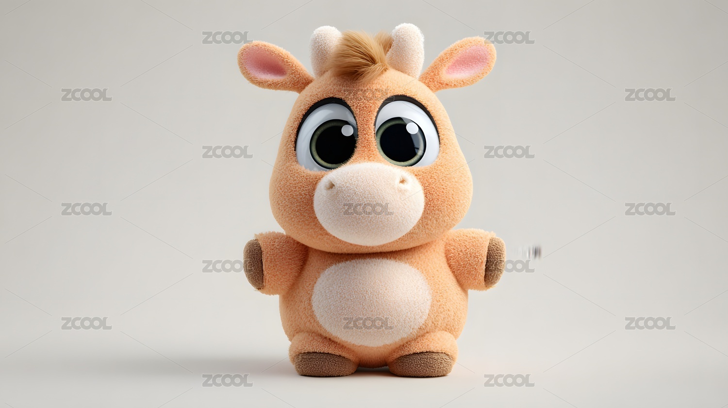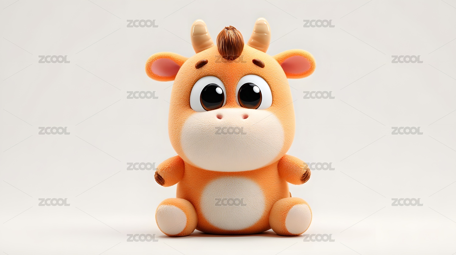 坐姿大眼萌趣棕色毛絨小牛公仔素材