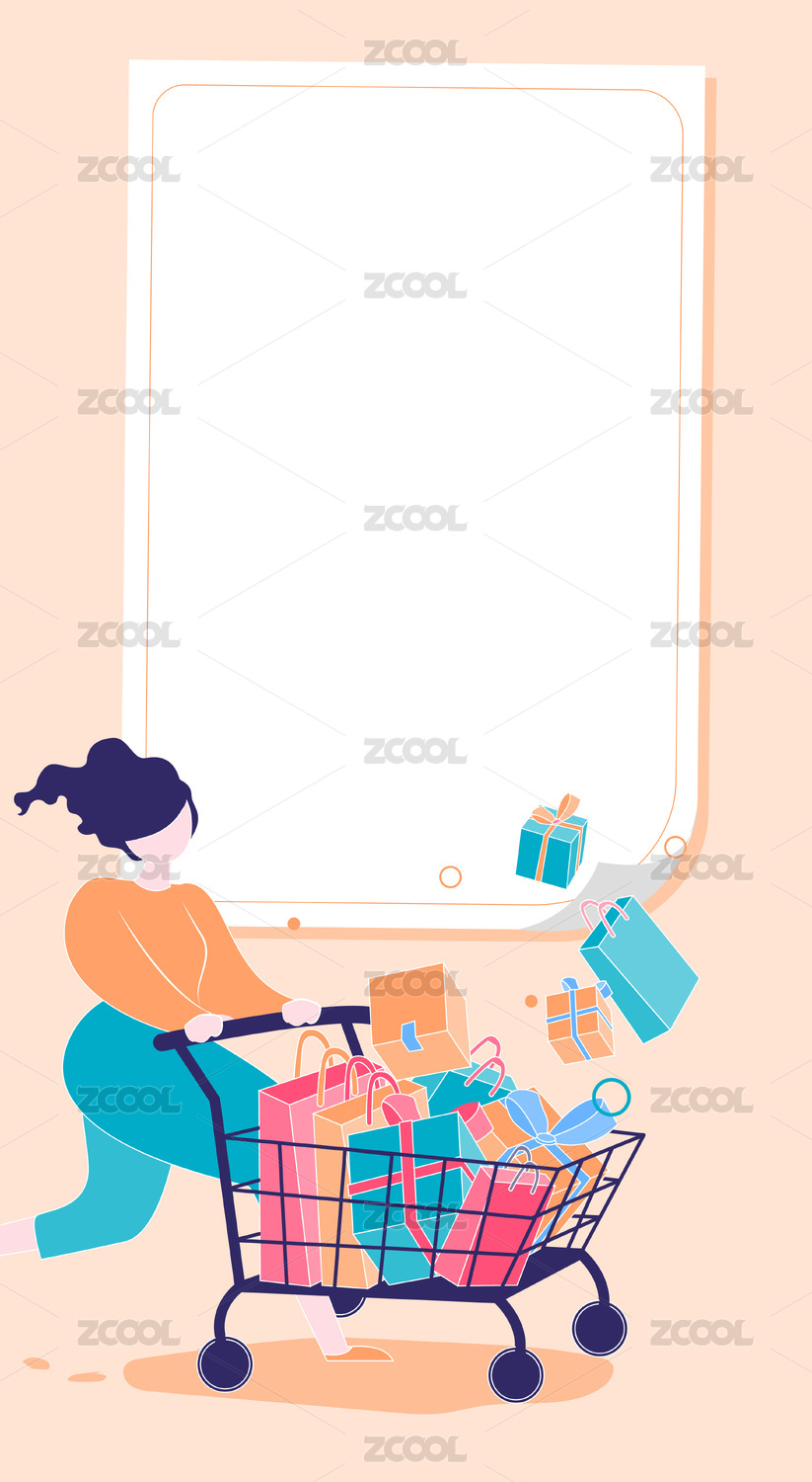 雙十一雙十二電商購(gòu)物蒸汽波風(fēng)格背景插畫(huà)