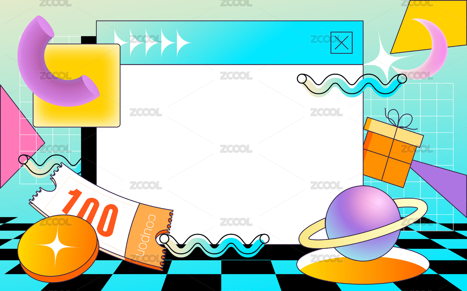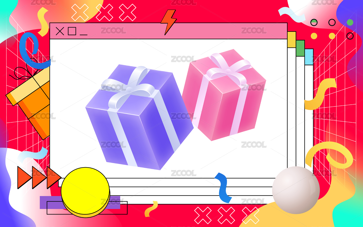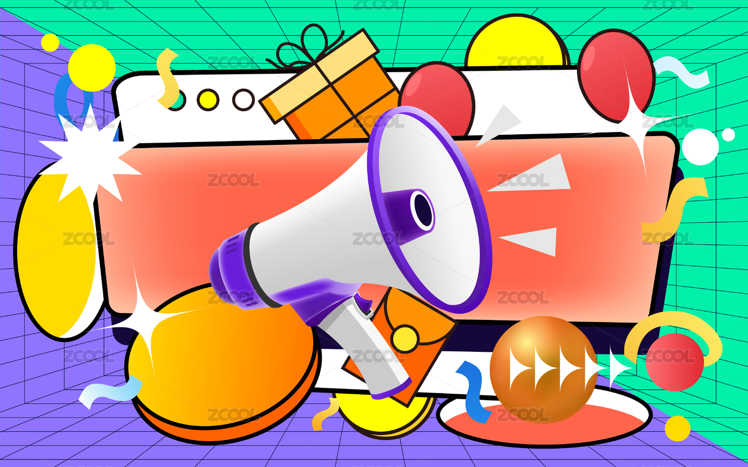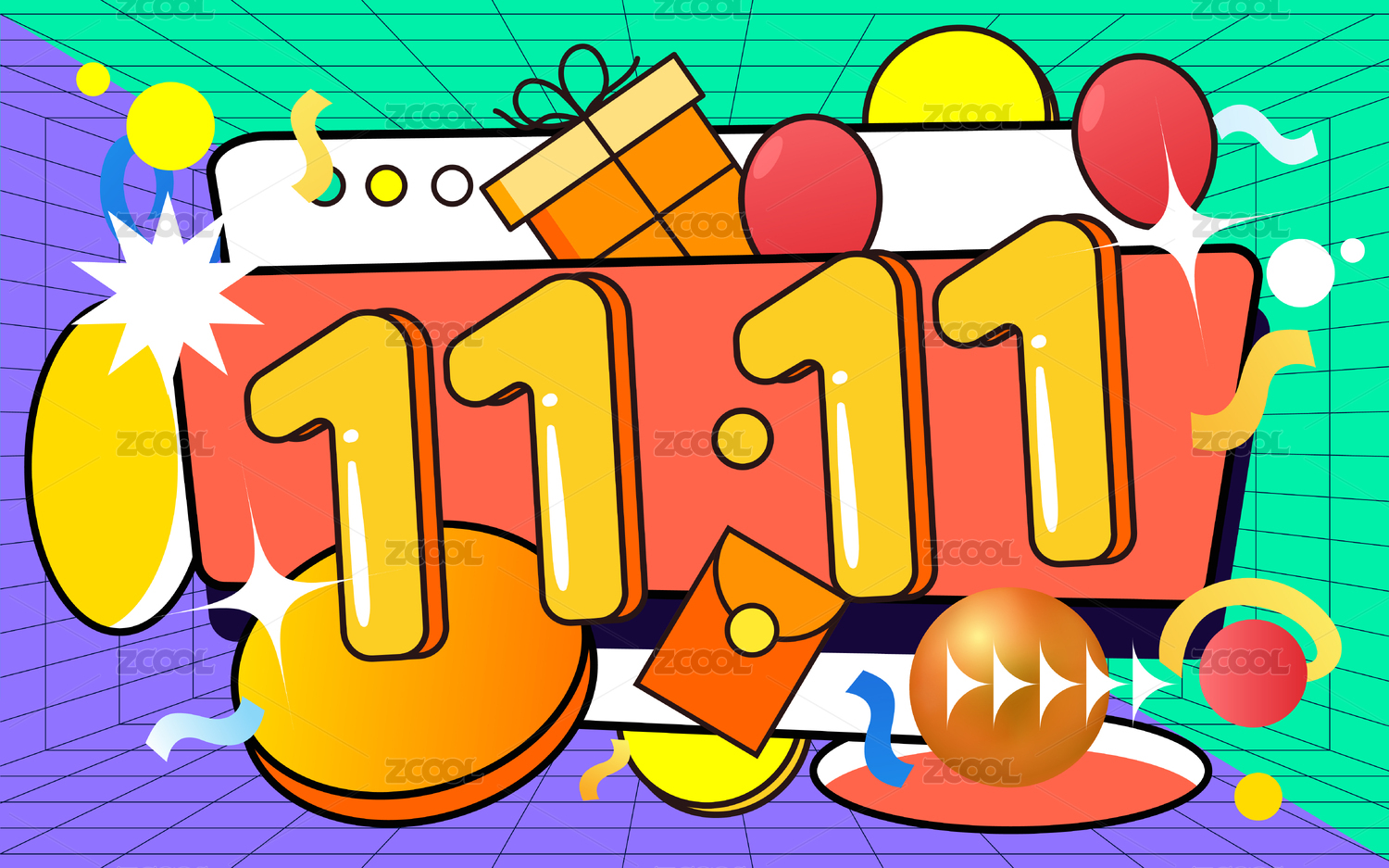 雙十一雙十二電商購物蒸汽波風(fēng)格背景插畫