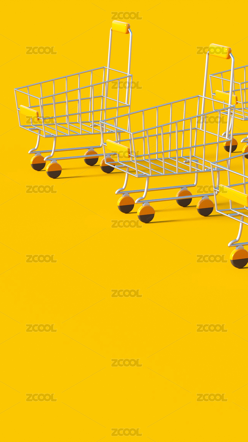 純色背景中的超市迷你購物車