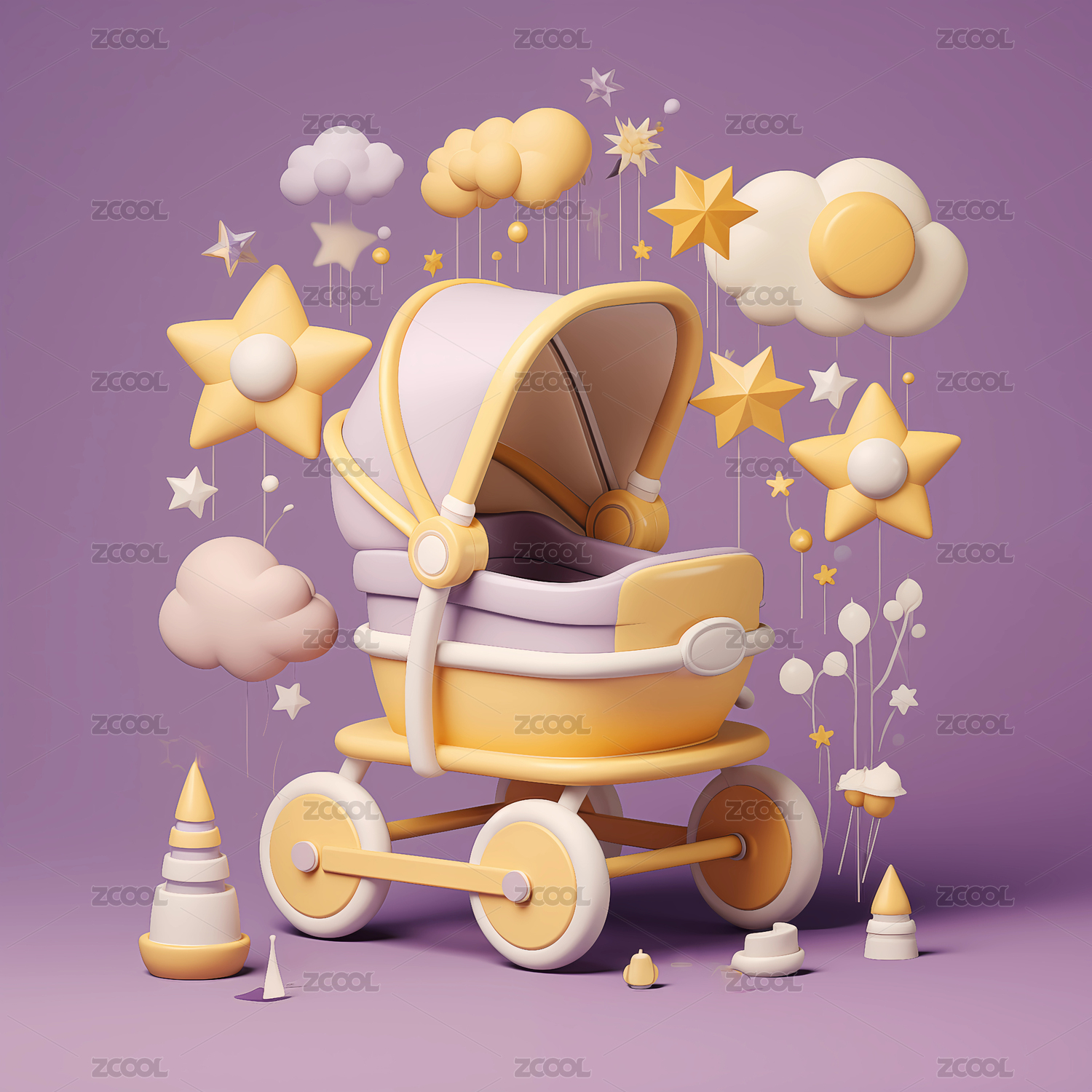 可愛卡通嬰兒車