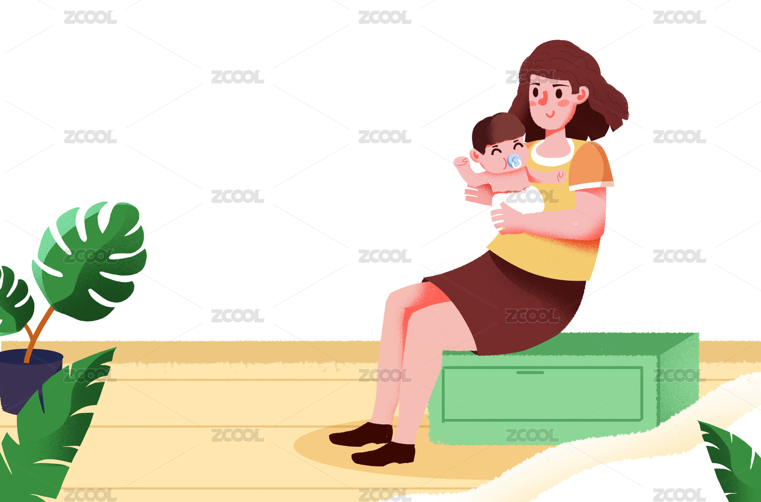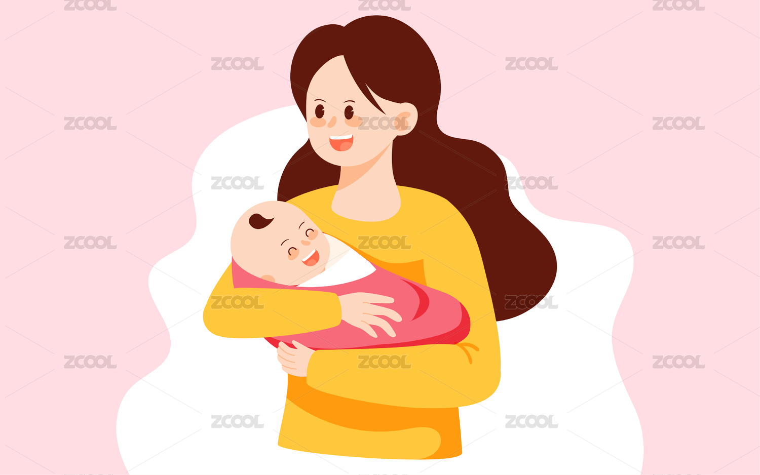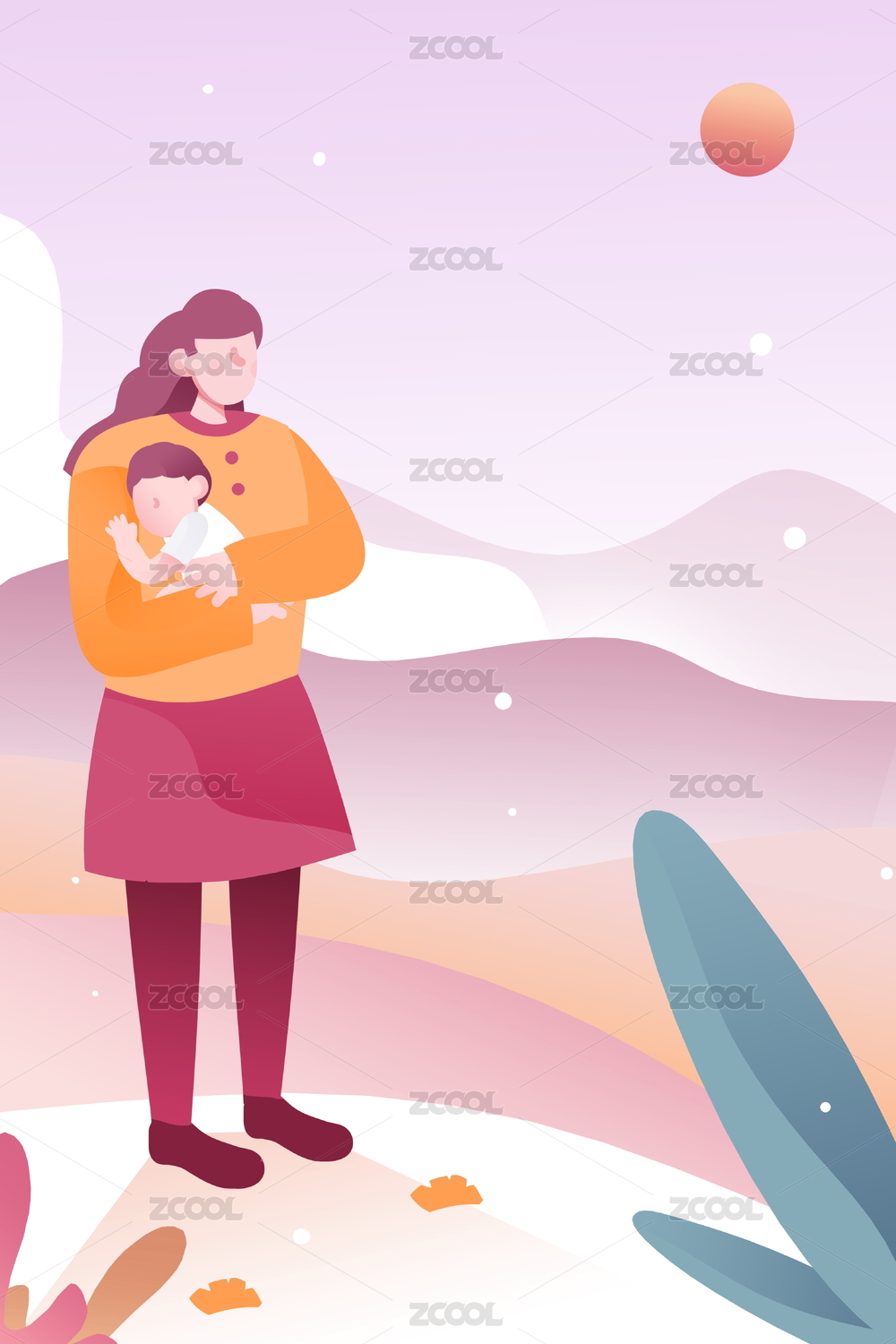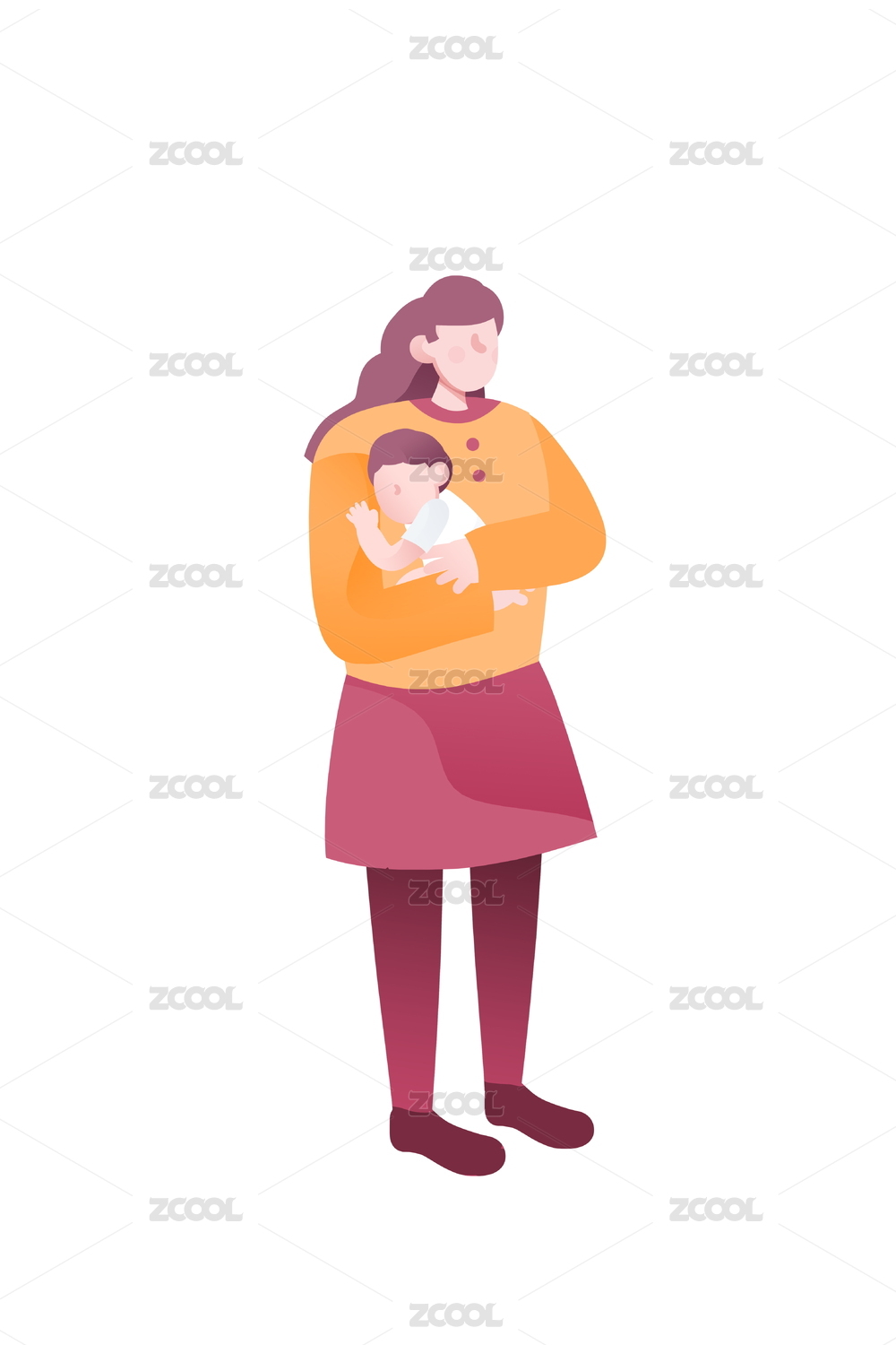 卡通手繪母嬰產品媽媽抱著嬰兒小孩素材插畫