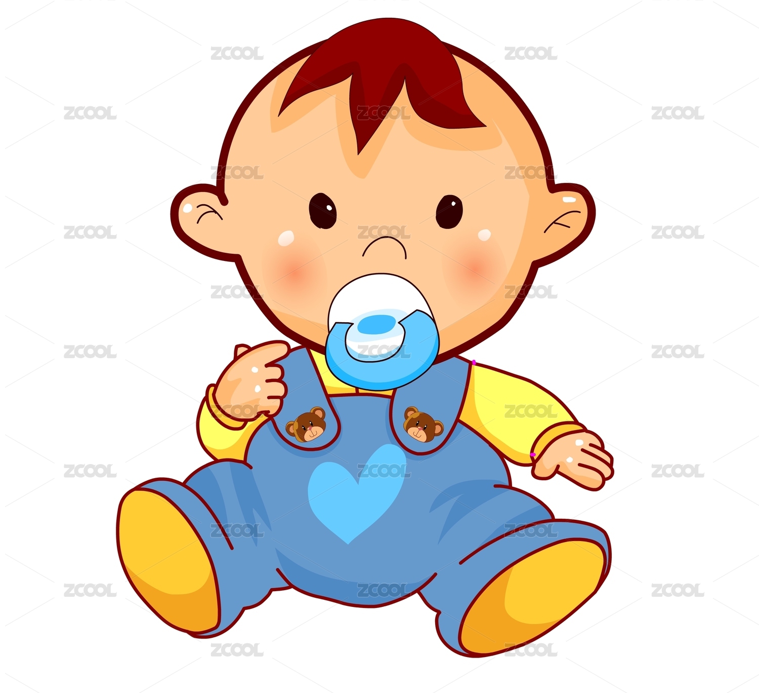 可愛的卡通嬰兒咬著奶嘴的矢量母嬰素材